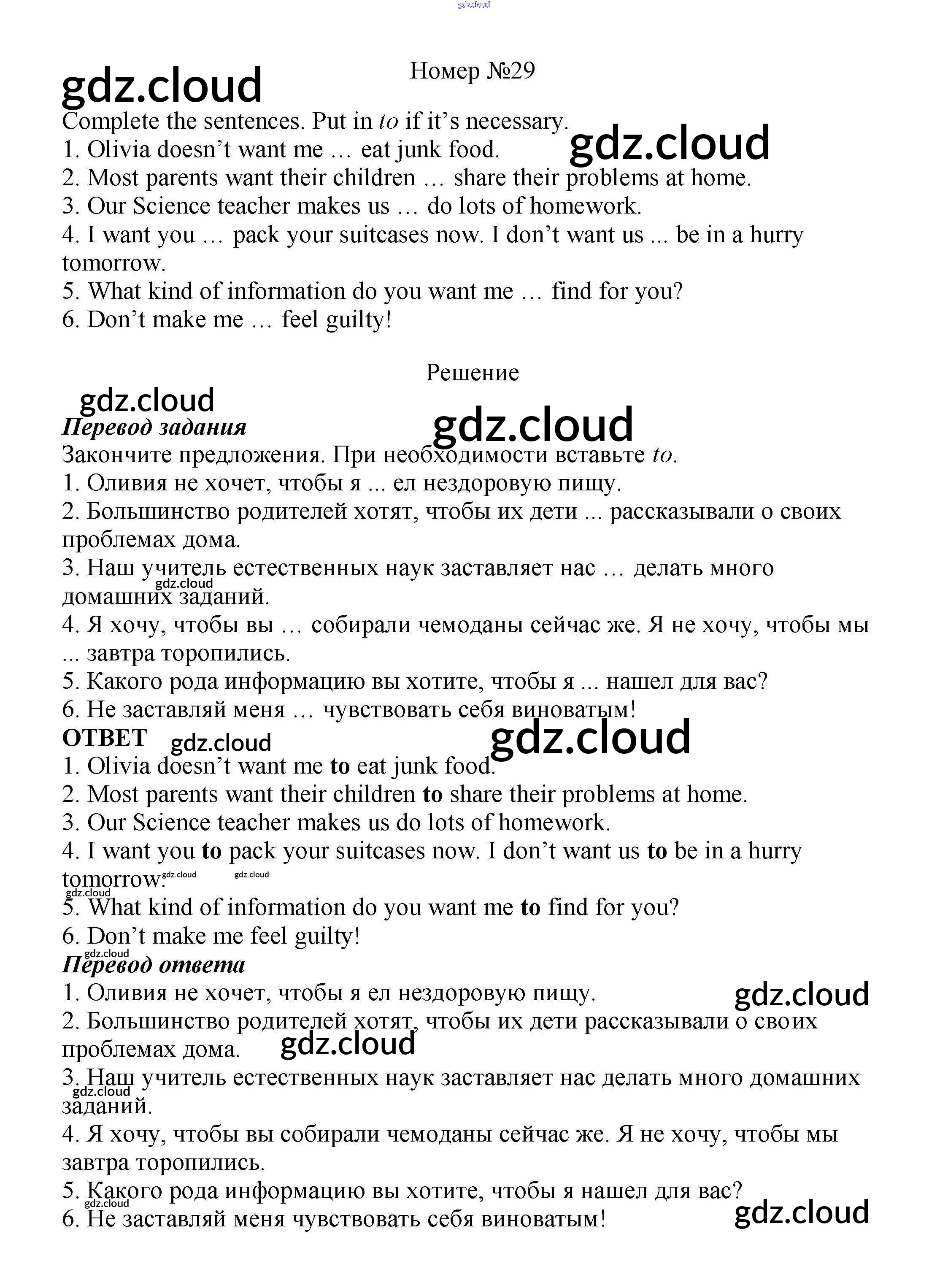 Ответ на задание 29 Учебник Английский язык  за 8 (восьмой) класс Биболетова, Трубанева Enjoy English  2015, 2017