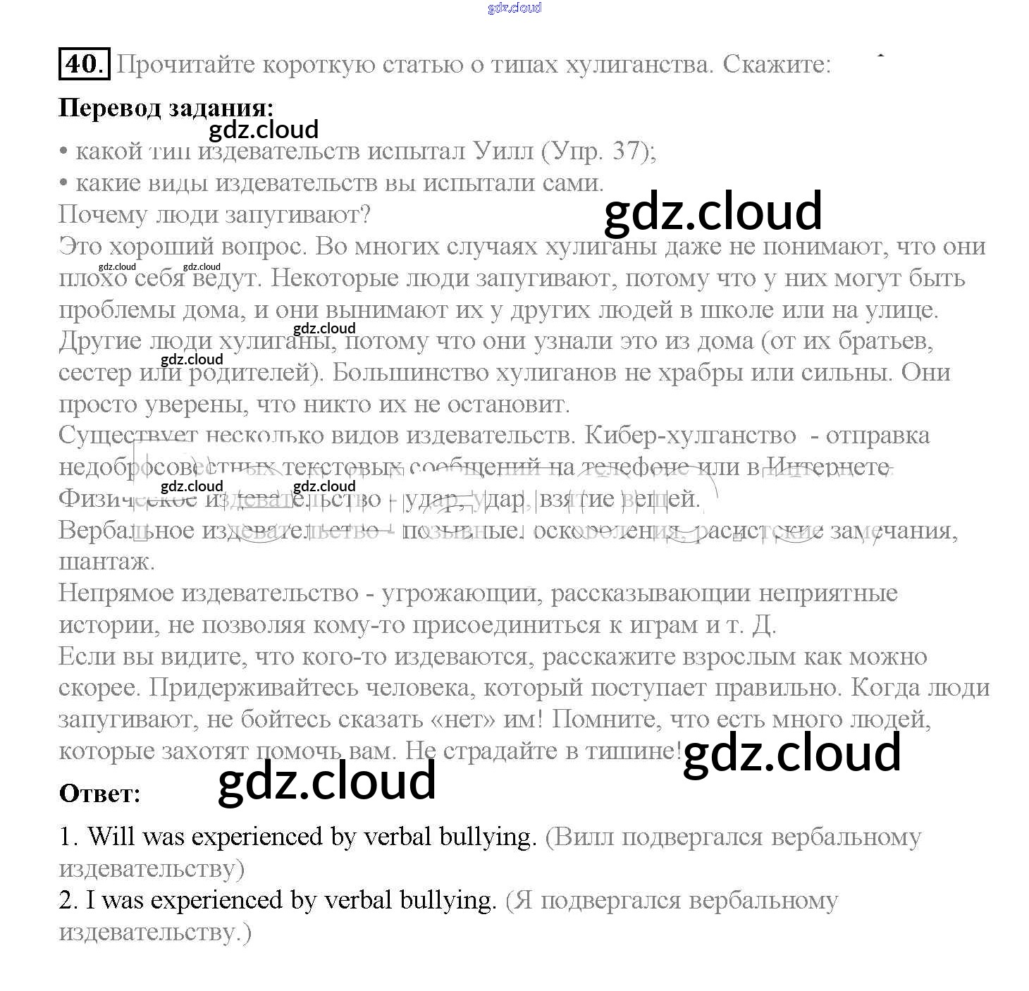 Ответ на задание 40 Учебник Английский язык  за 8 (восьмой) класс Биболетова, Трубанева Enjoy English  2015, 2017