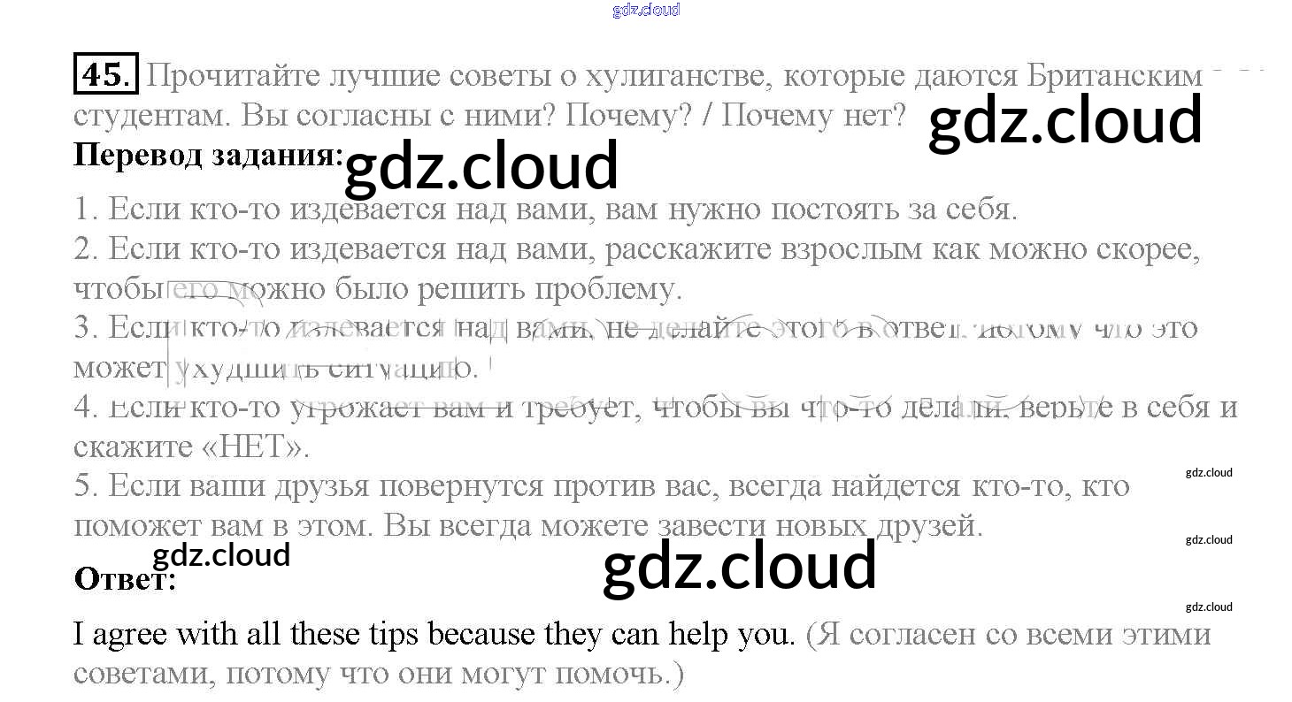 Ответ на задание 45 Учебник Английский язык  за 8 (восьмой) класс Биболетова, Трубанева Enjoy English  2015, 2017