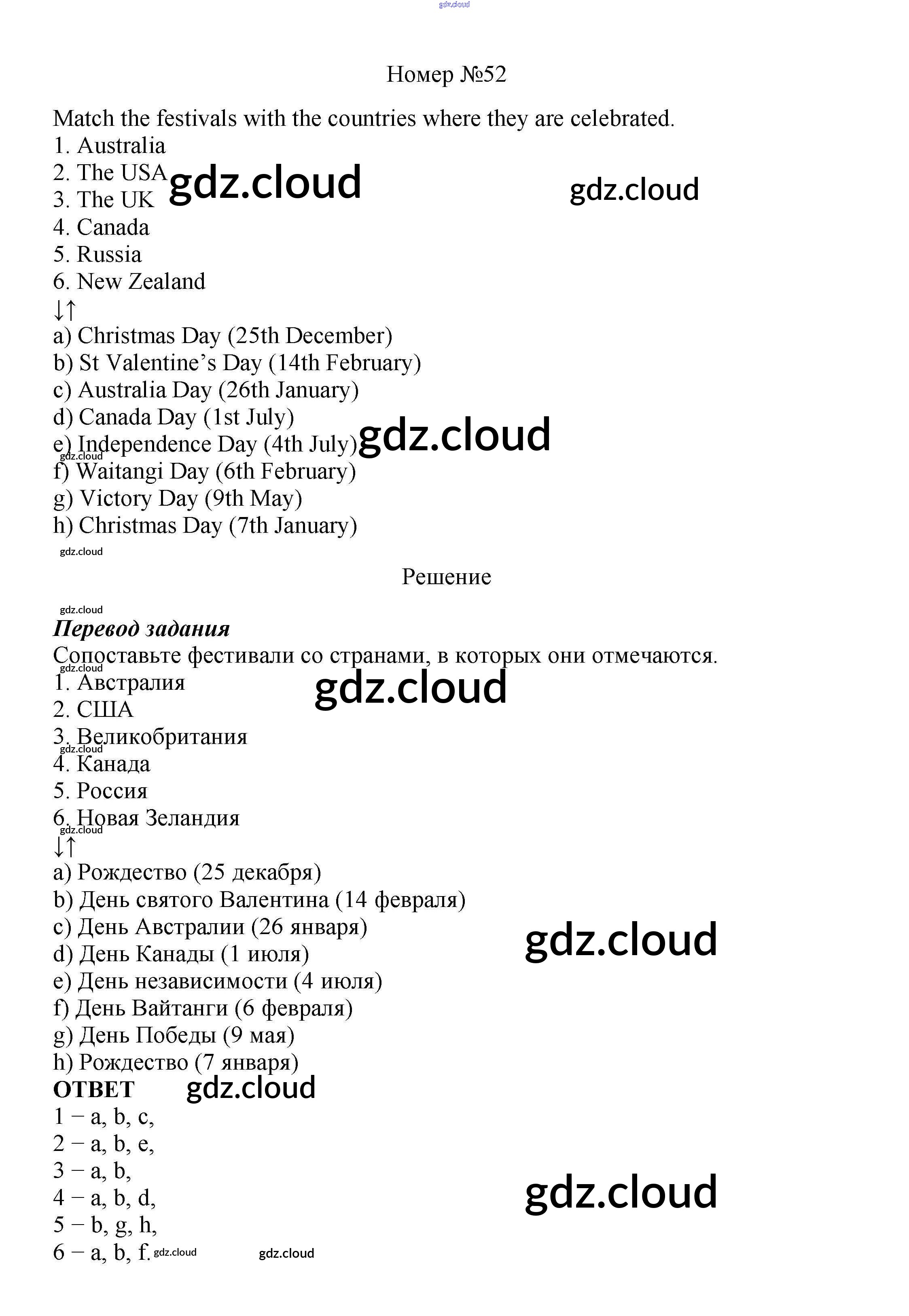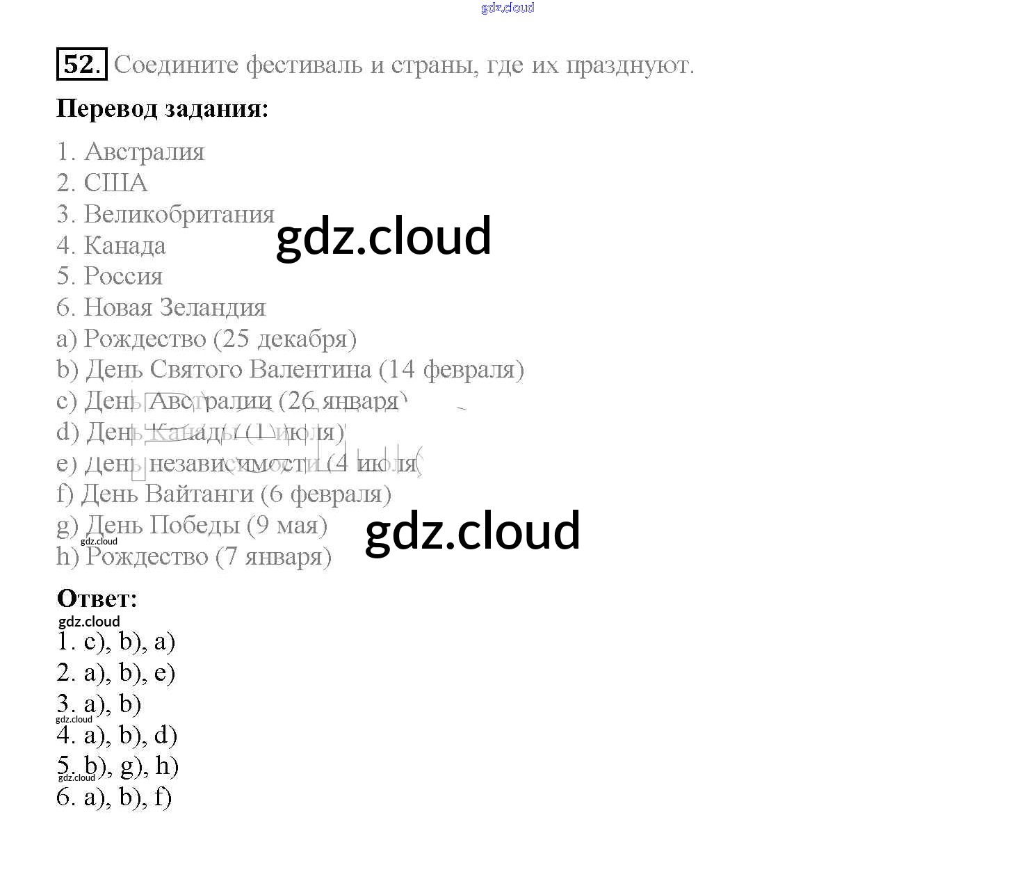 Ответ на задание 52 Учебник Английский язык  за 8 (восьмой) класс Биболетова, Трубанева Enjoy English  2015, 2017