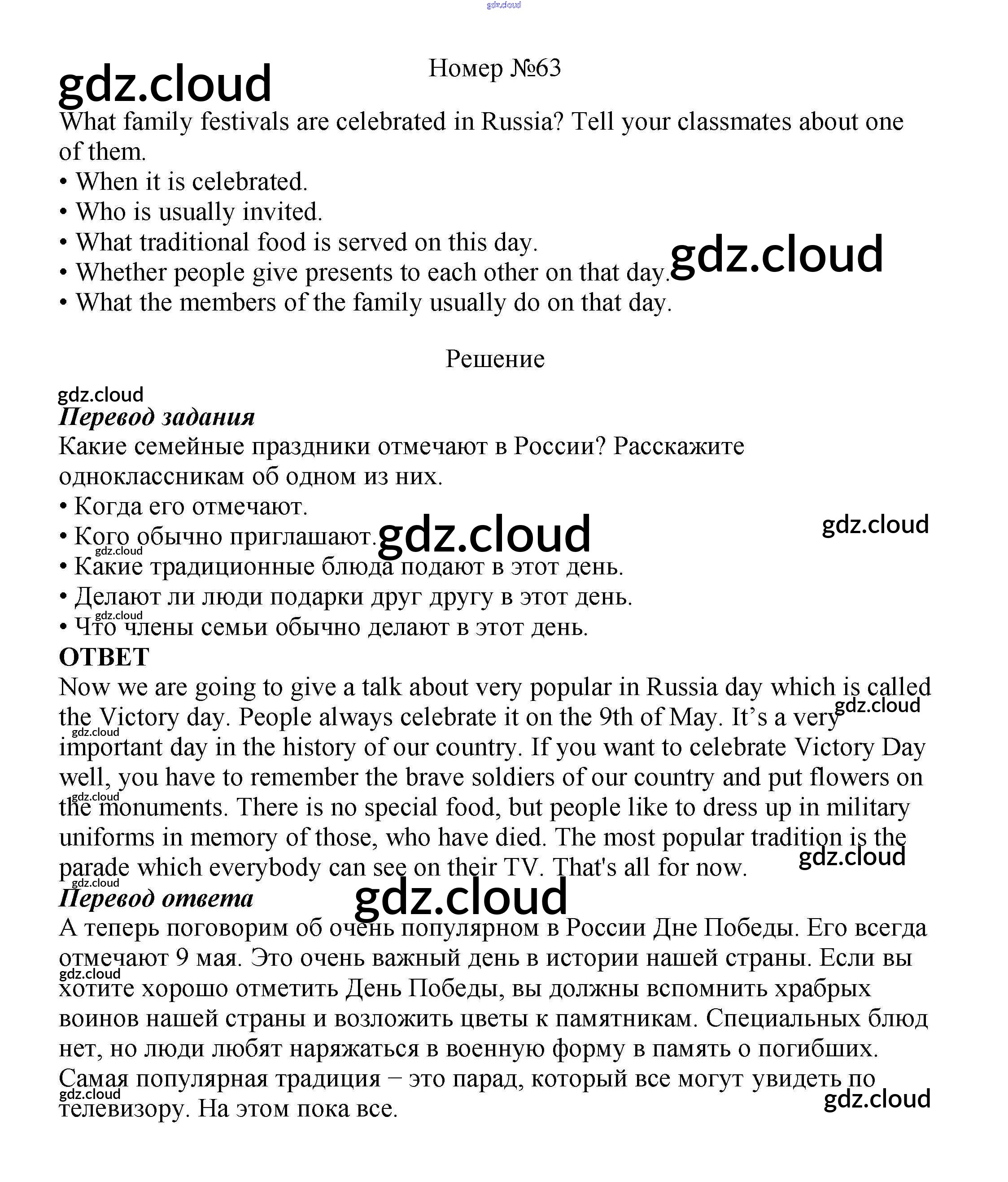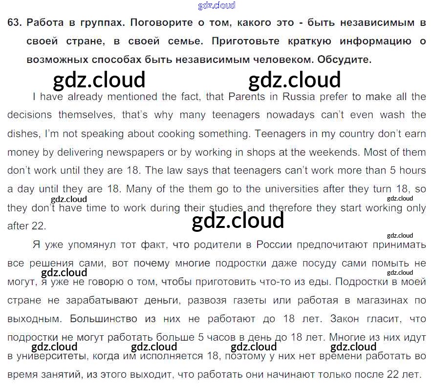 Ответ на задание 63 Учебник Английский язык  за 8 (восьмой) класс Биболетова, Трубанева Enjoy English  2015, 2017