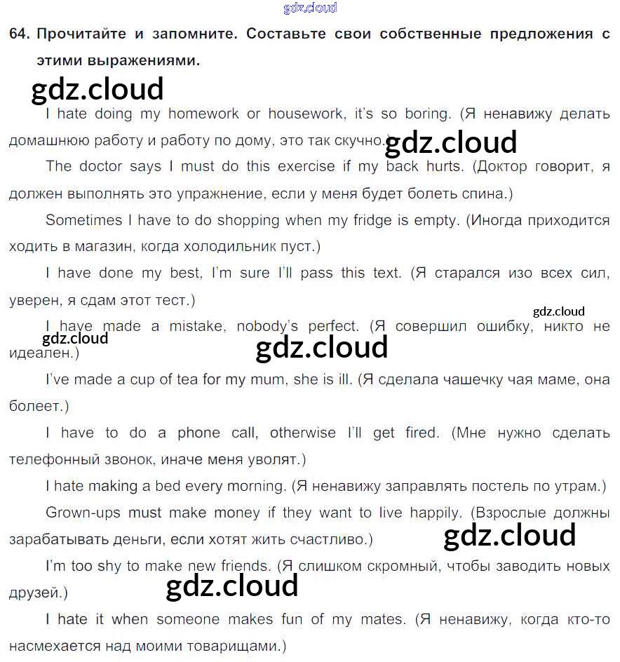 Ответ на задание 64 Учебник Английский язык  за 8 (восьмой) класс Биболетова, Трубанева Enjoy English  2015, 2017