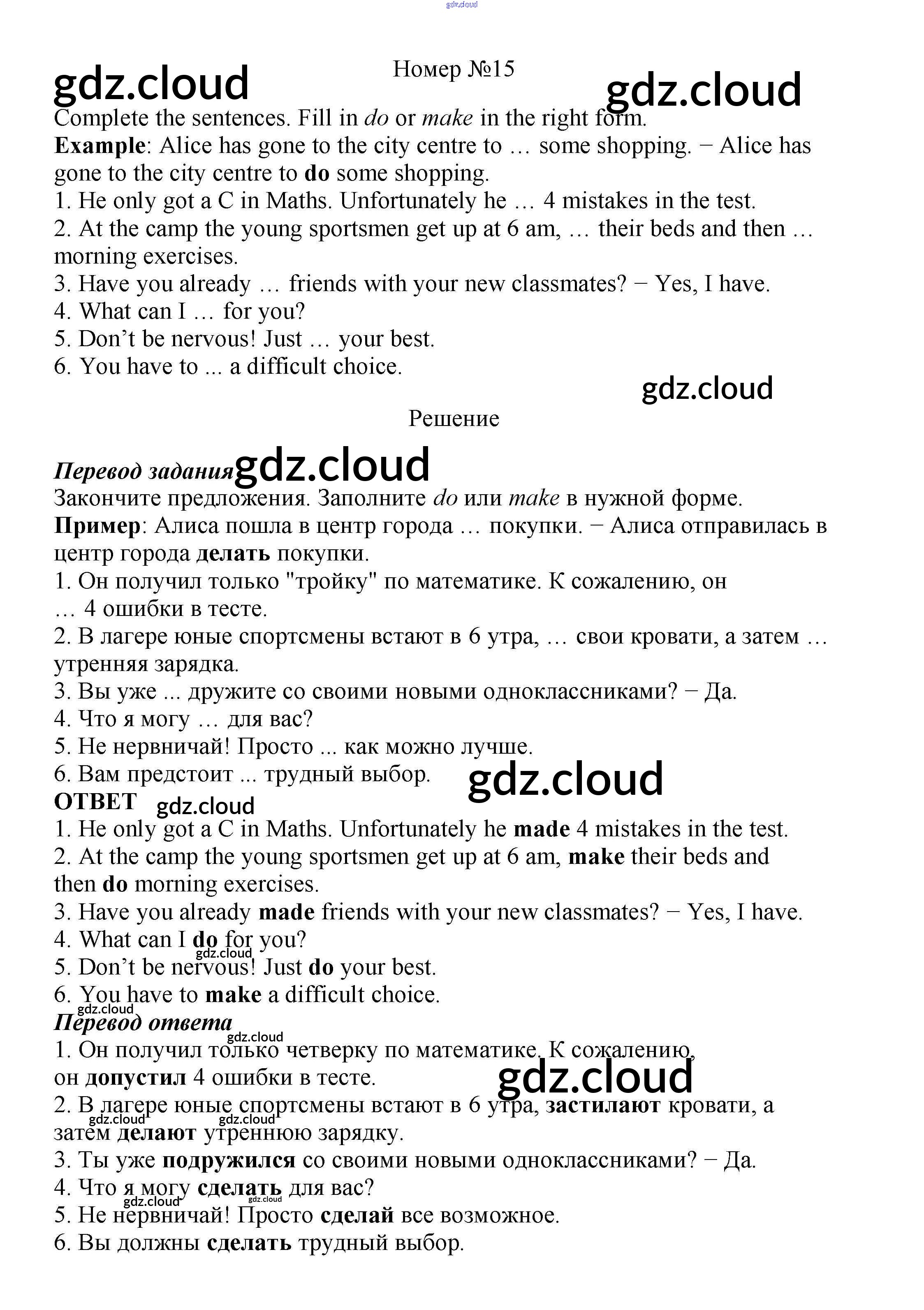 Ответ на задание 15 Учебник Английский язык  за 8 (восьмой) класс Биболетова, Трубанева Enjoy English  2015, 2017