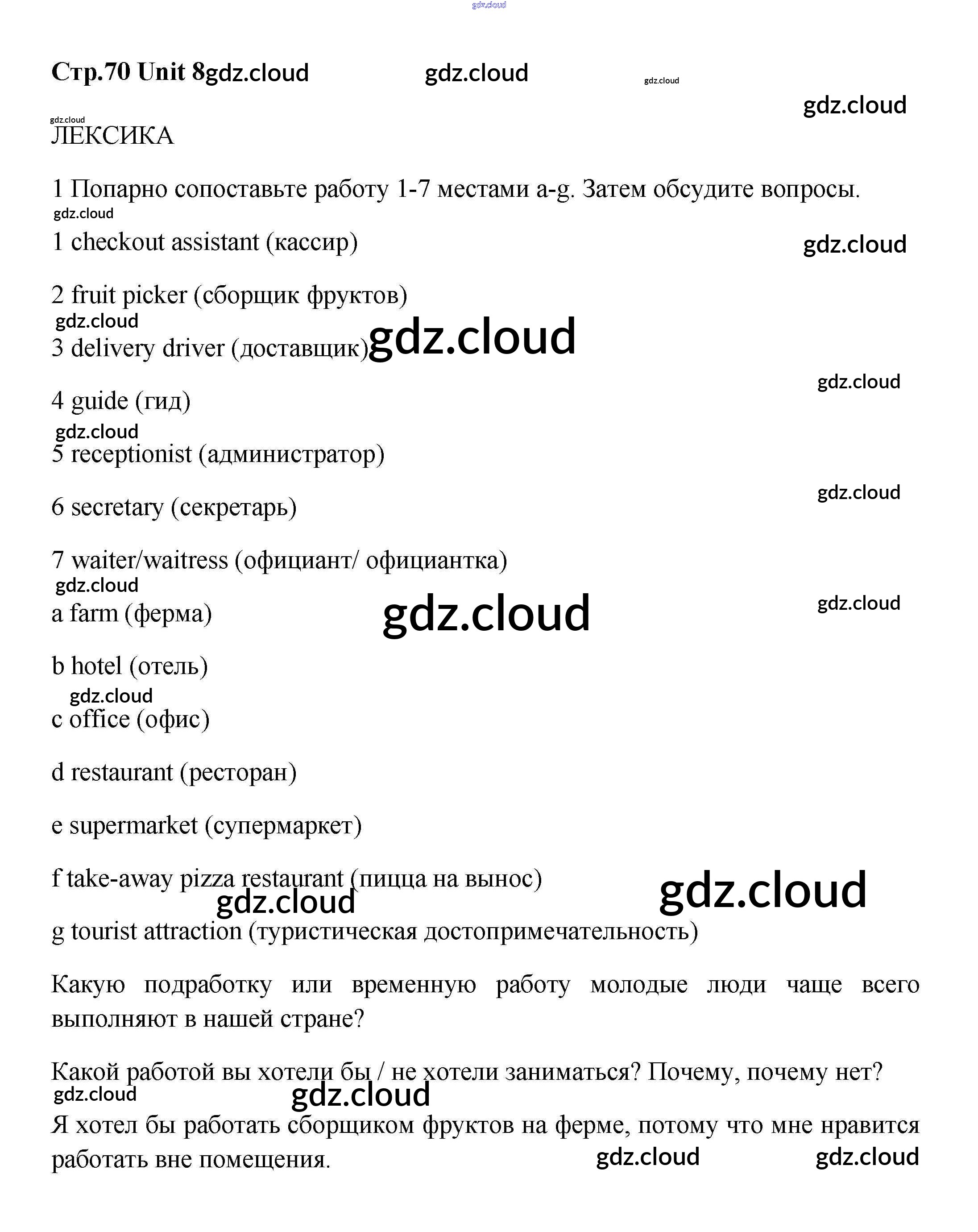 Ответ на задание стр.70 Учебник Английский язык  за 8 (восьмой) класс Вербицкая, Маккинли, Хастингс, Миндрул Forward  2016