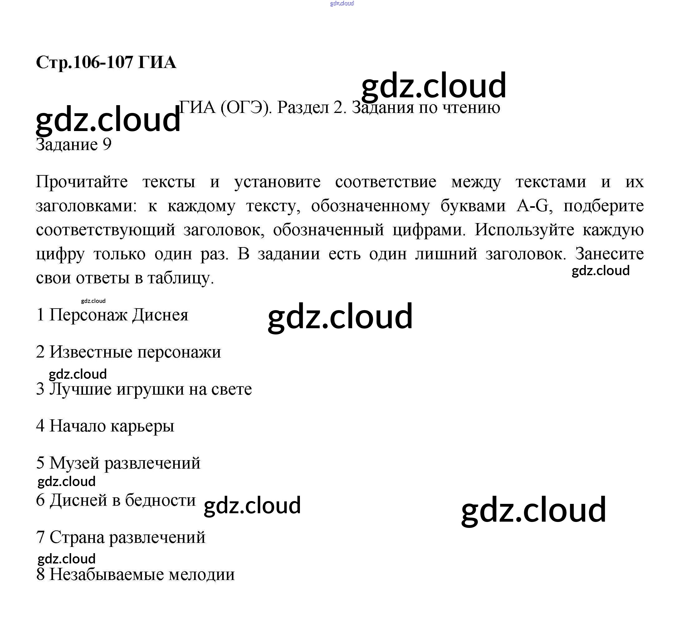 Ответ на задание стр.106-107 Учебник Английский язык  за 8 (восьмой) класс Вербицкая, Маккинли, Хастингс, Миндрул Forward  2016