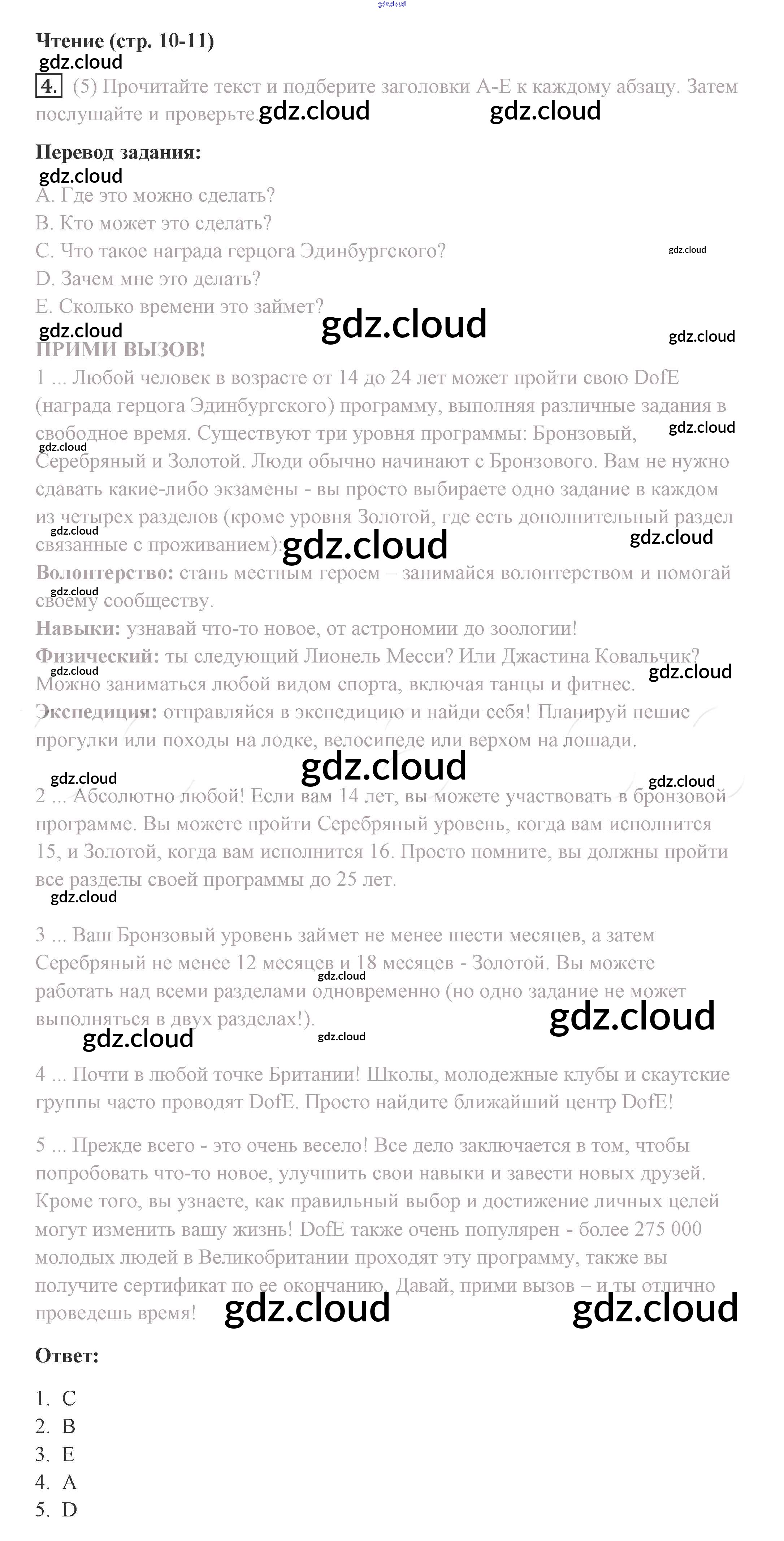 Ответ на задание 10 Учебник Английский язык за 8 (восьмой) класс Комарова, Ларионова, Макбет Инновационная школа 2016