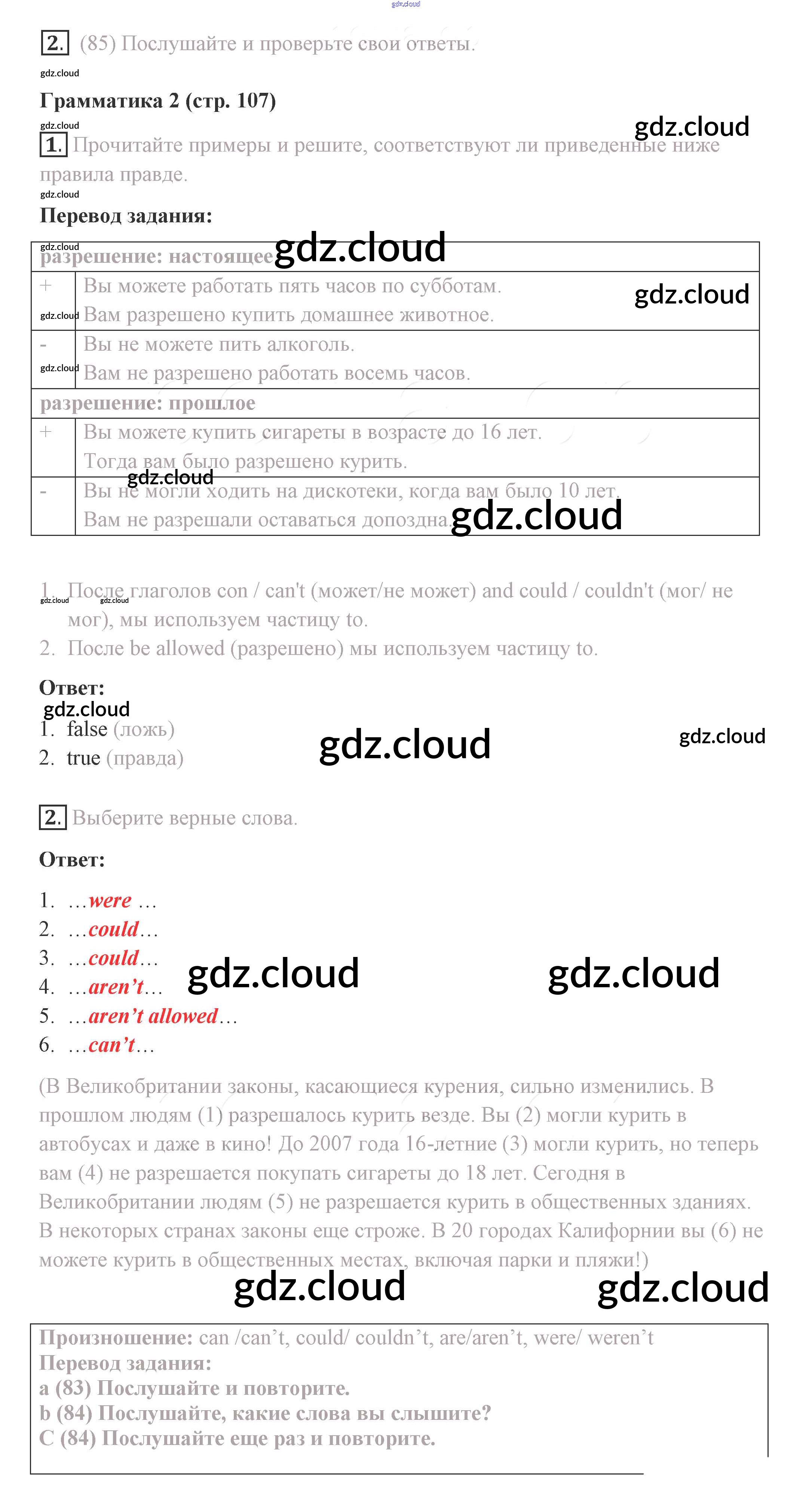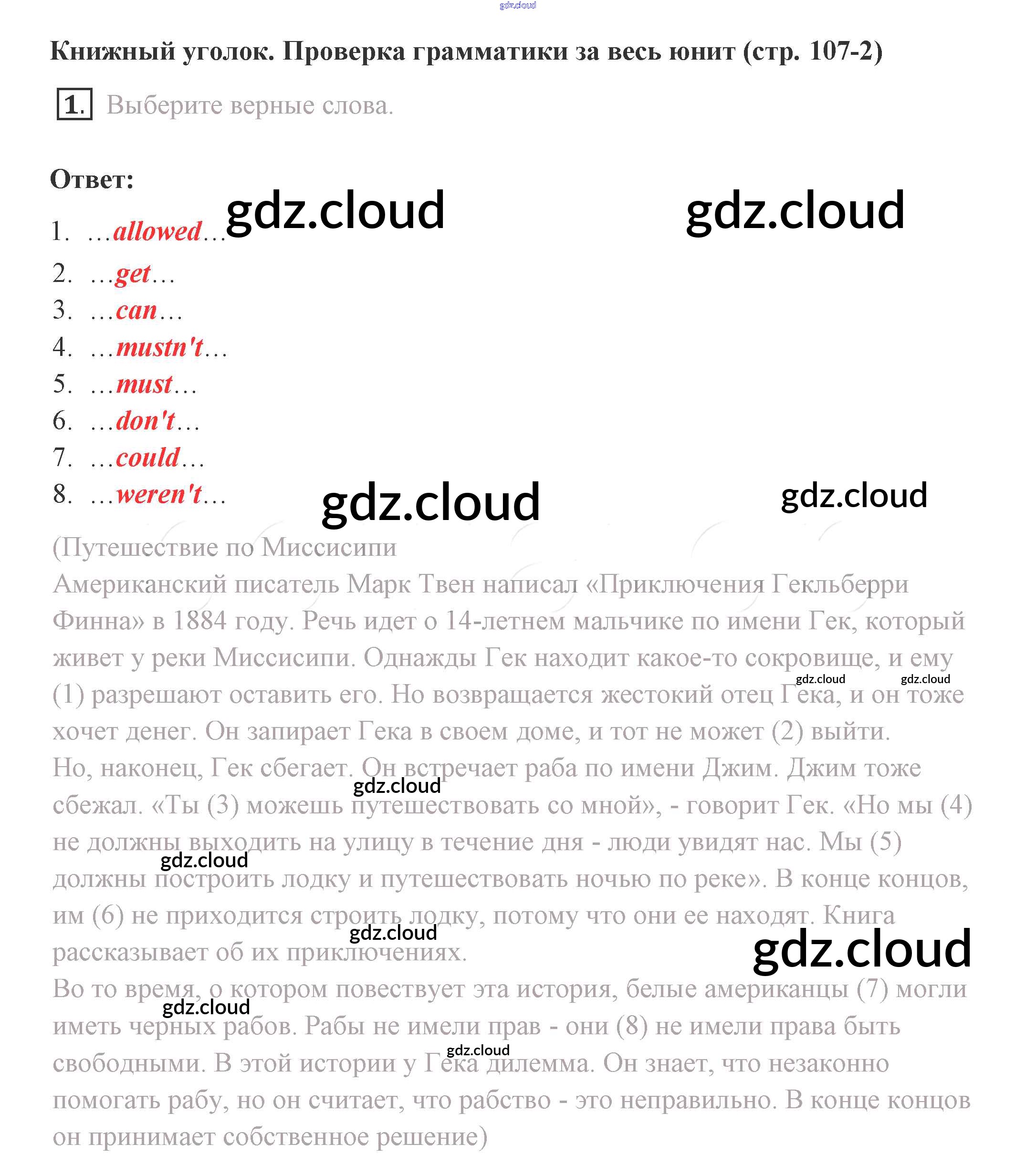 Ответ на задание 107 Учебник Английский язык  за 8 (восьмой) класс Комарова, Ларионова, Макбет Инновационная школа  2016