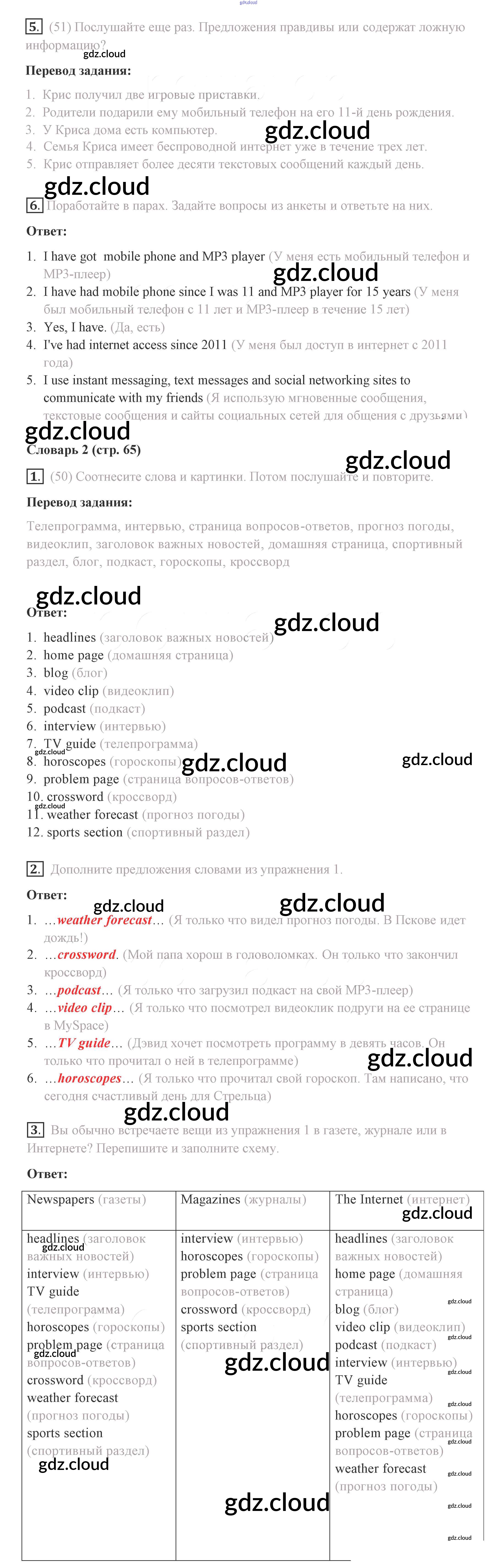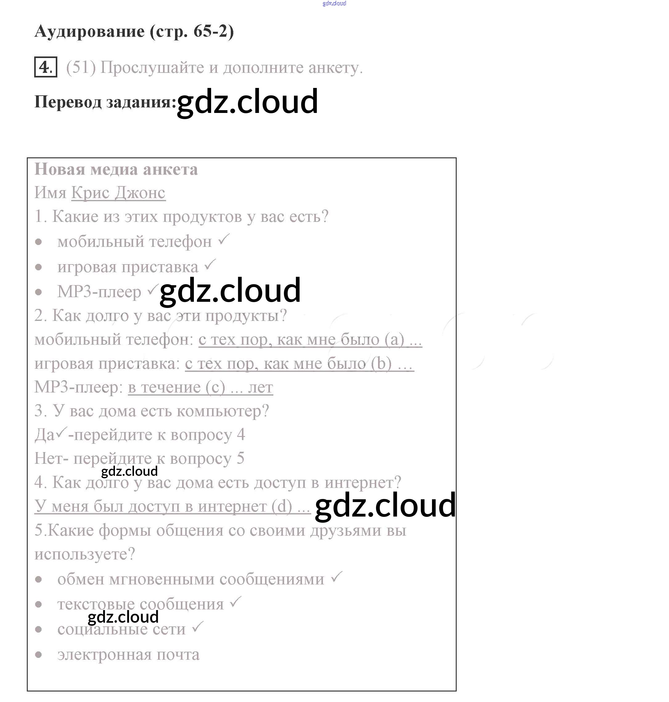 Ответ на задание 65 Учебник Английский язык  за 8 (восьмой) класс Комарова, Ларионова, Макбет Инновационная школа  2016