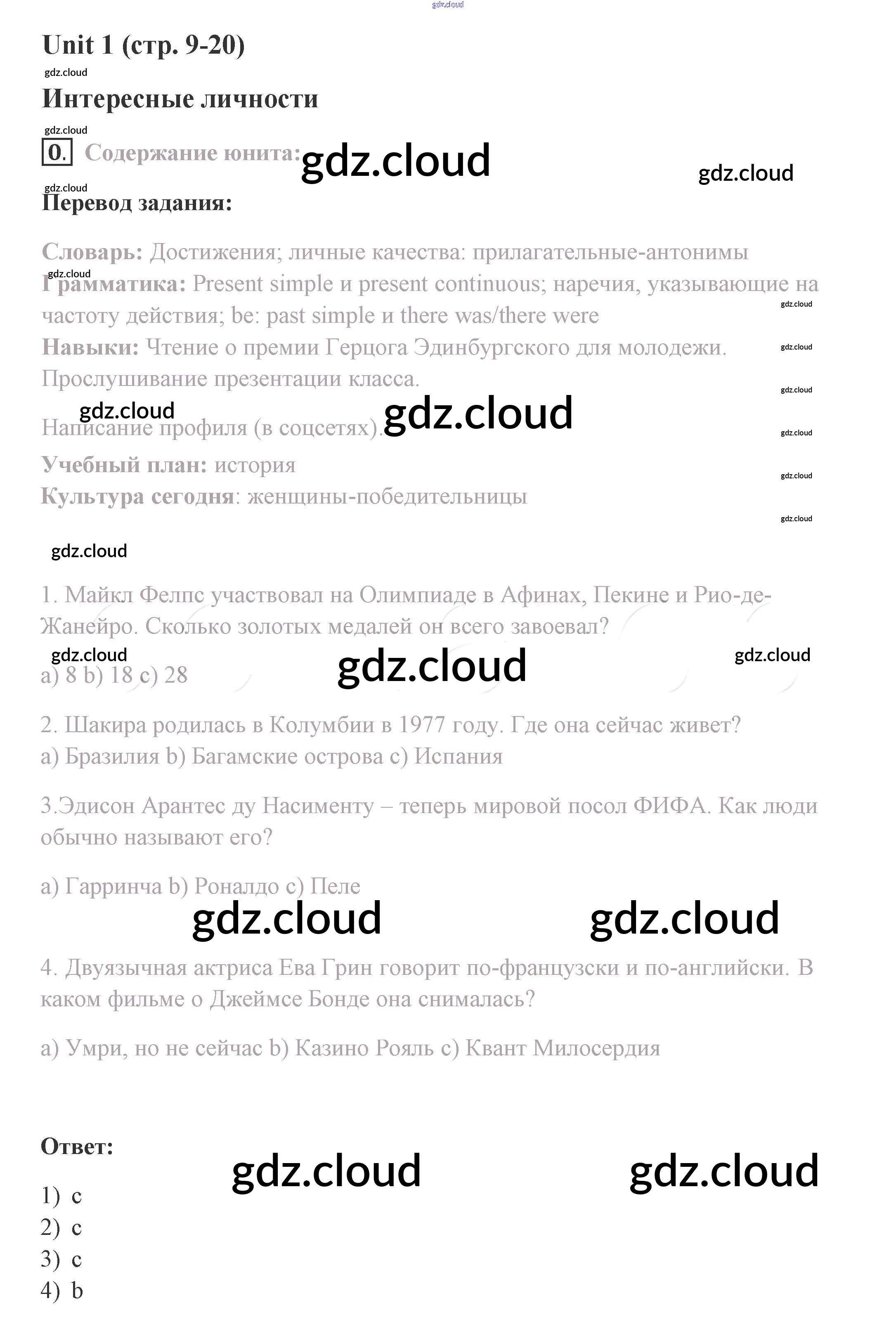 Ответ на задание 9 Учебник Английский язык  за 8 (восьмой) класс Комарова, Ларионова, Макбет Инновационная школа  2016