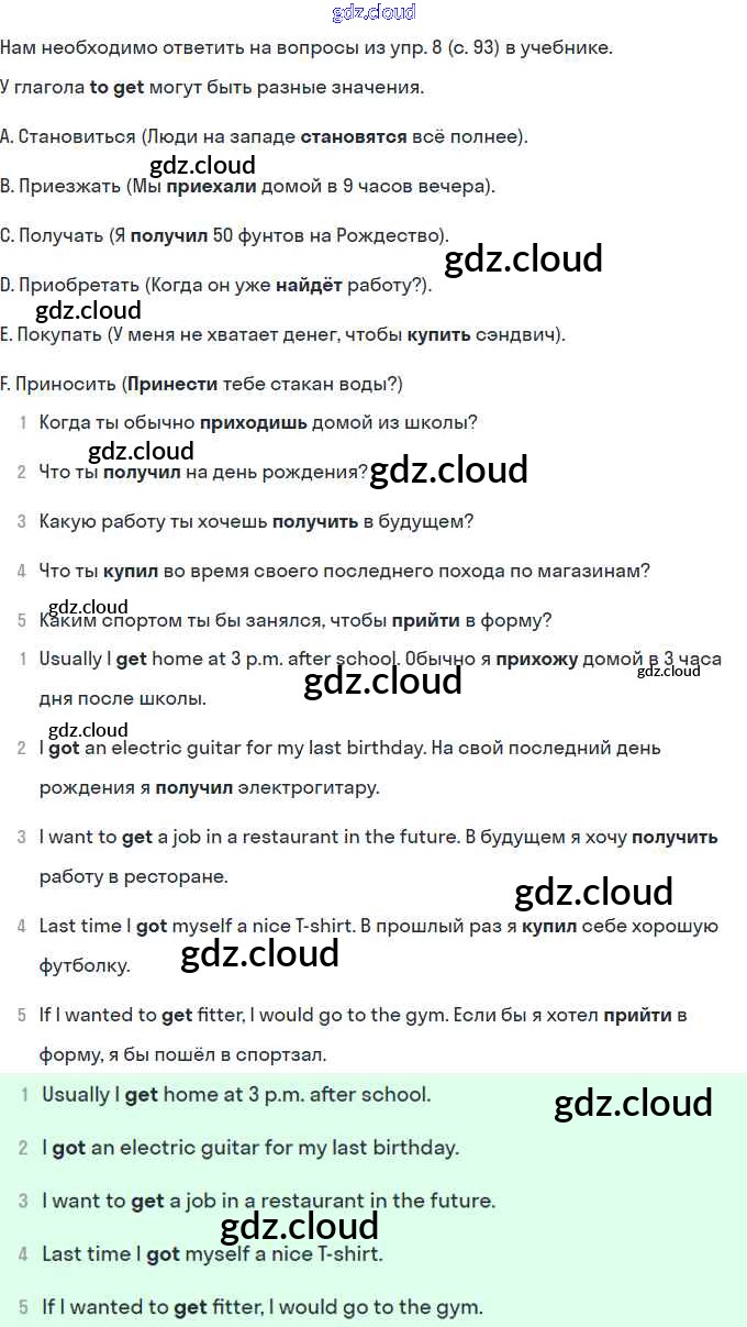 Ответ на задание 93 Учебник Английский язык  за 8 (восьмой) класс Комарова, Ларионова, Макбет Инновационная школа  2016