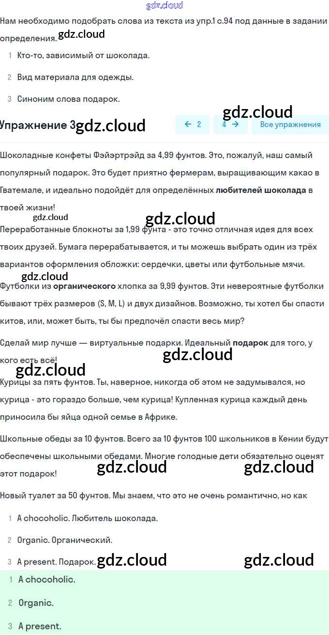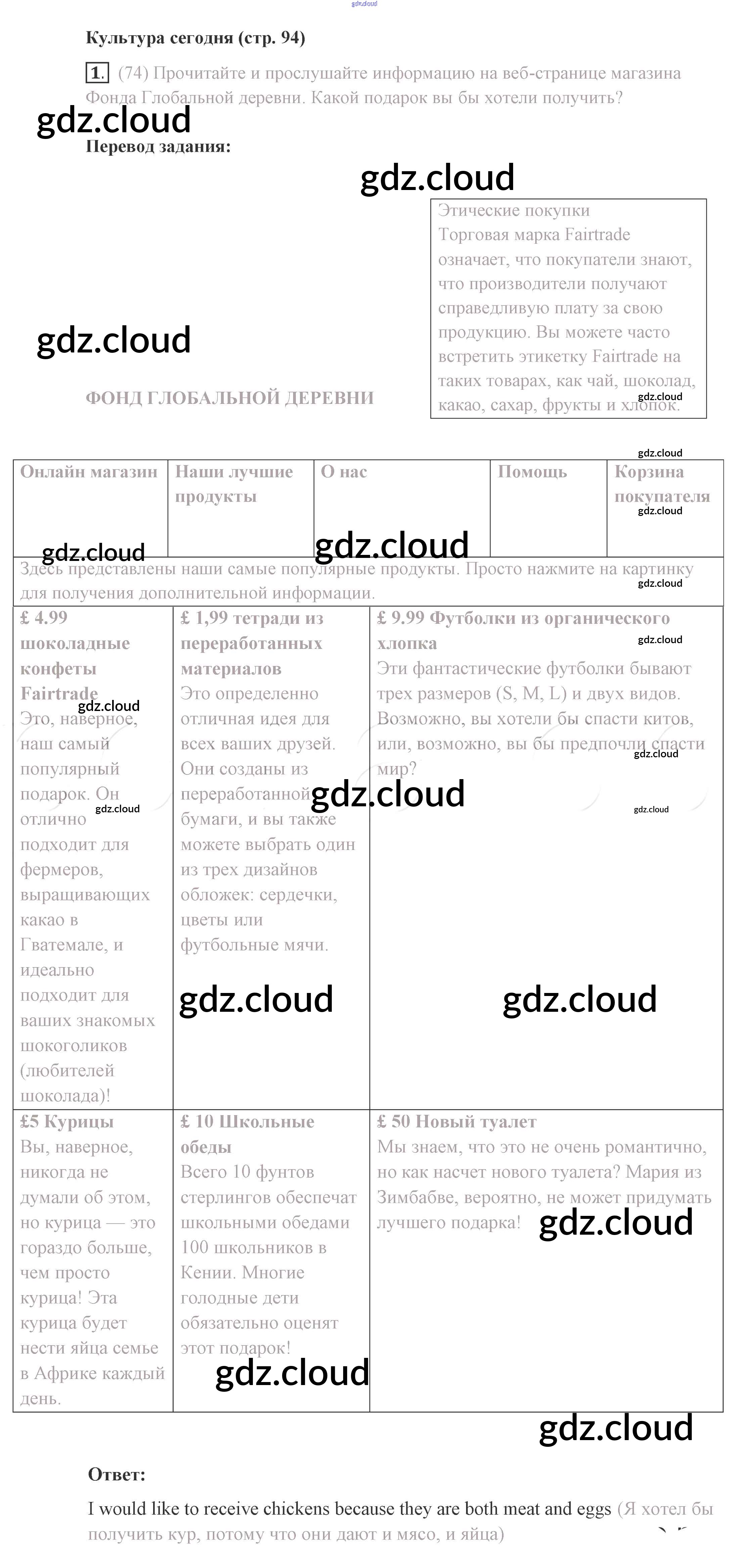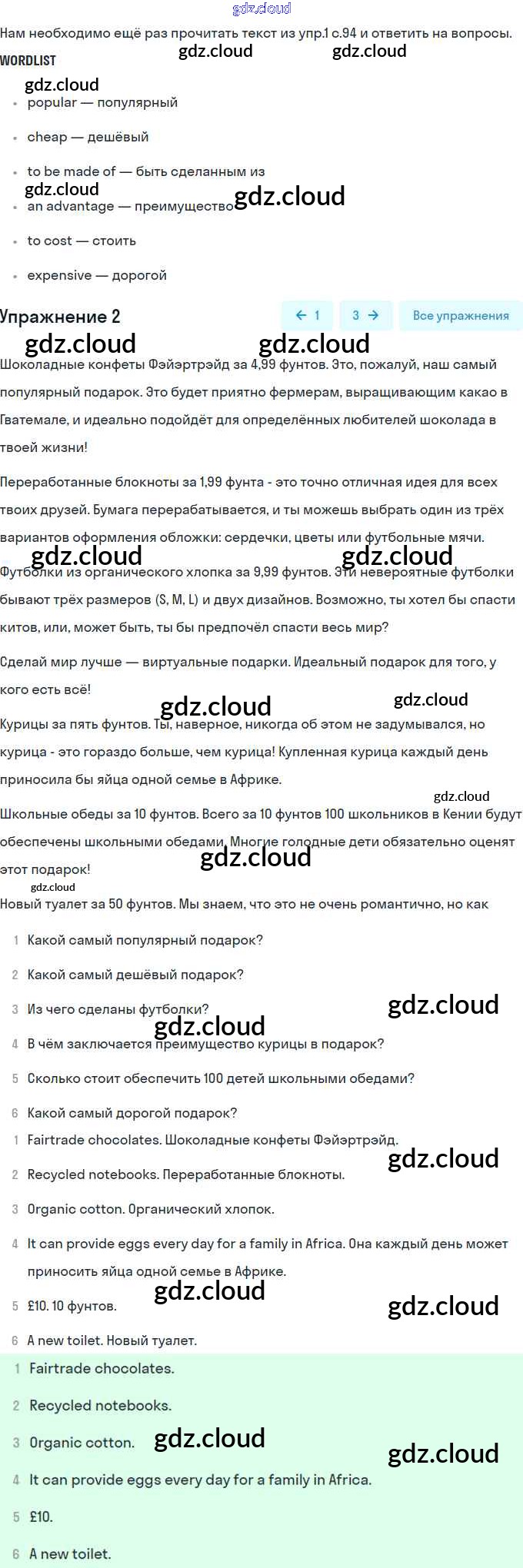 Ответ на задание 94 Учебник Английский язык  за 8 (восьмой) класс Комарова, Ларионова, Макбет Инновационная школа  2016
