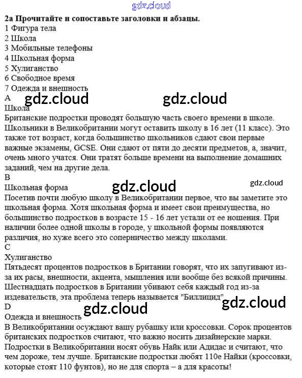 Ответ на задание 2a Учебник Английский язык  за 8 (восьмой) класс Дворецкая, Казырбаева, Кузеванова, Мичурина, Новикова, Талзи, Шалимова New Millennium  2014