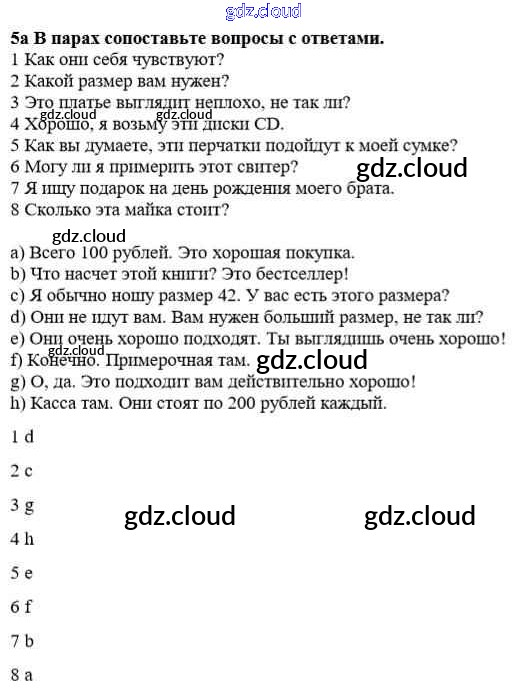 Ответ на задание 5a Учебник Английский язык  за 8 (восьмой) класс Дворецкая, Казырбаева, Кузеванова, Мичурина, Новикова, Талзи, Шалимова New Millennium  2014