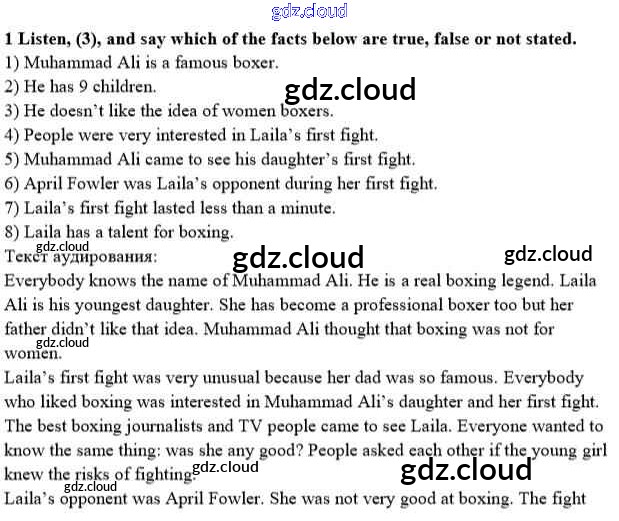 Ответ на задание 1 Учебник Английский язык  за 8 (восьмой) класс Афанасьева, Михеева, Баранова Rainbow  2016