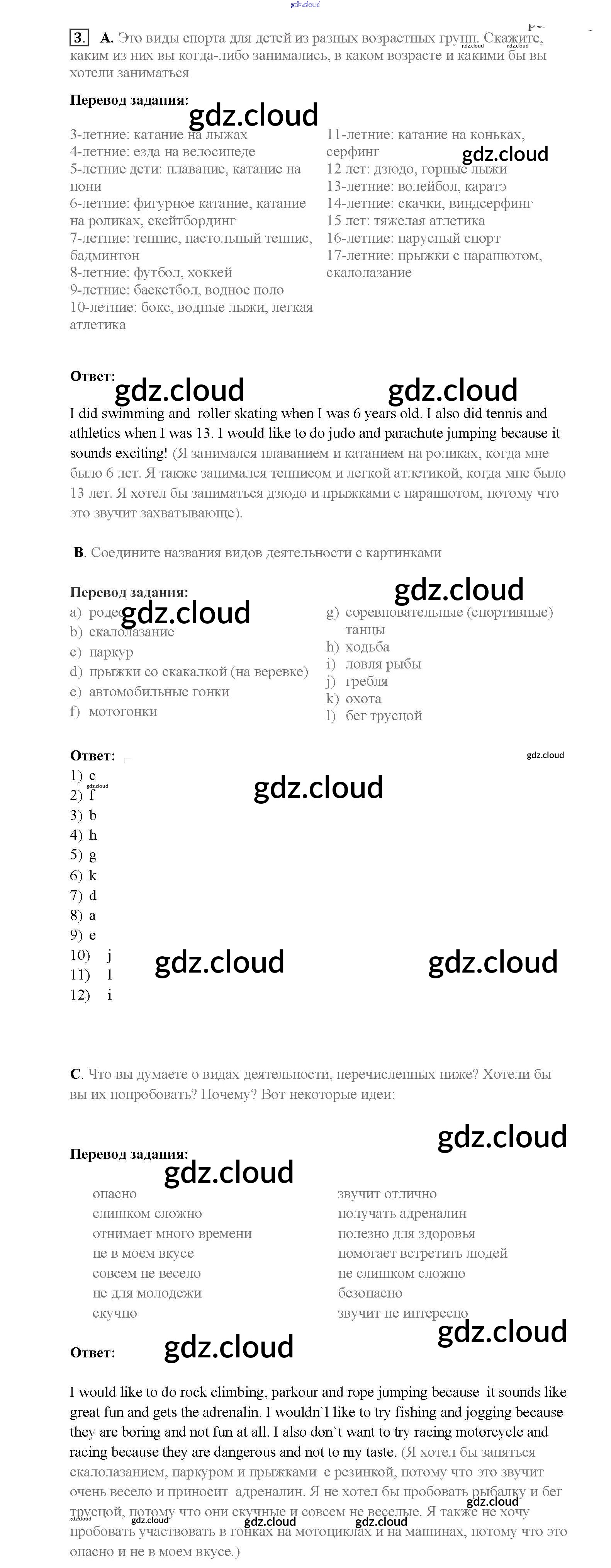 Step 9 Ответы к Unit 1. Sport and outdoor activities по Английскому языку 8 класс Учебник Афанасьева Rainbow   Дрофа