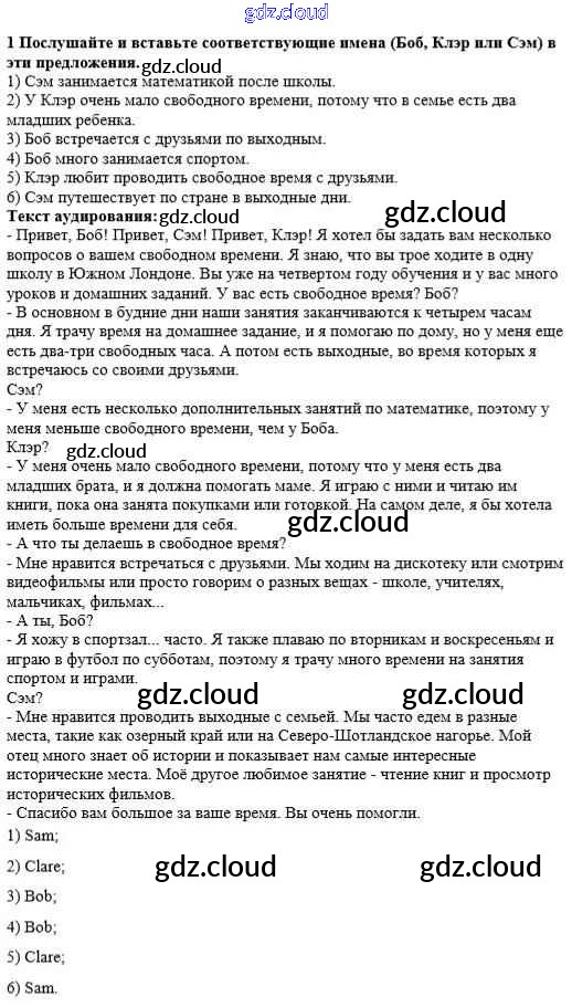 Ответ на задание 1 Учебник Английский язык  за 8 (восьмой) класс Афанасьева, Михеева, Баранова Rainbow  2016