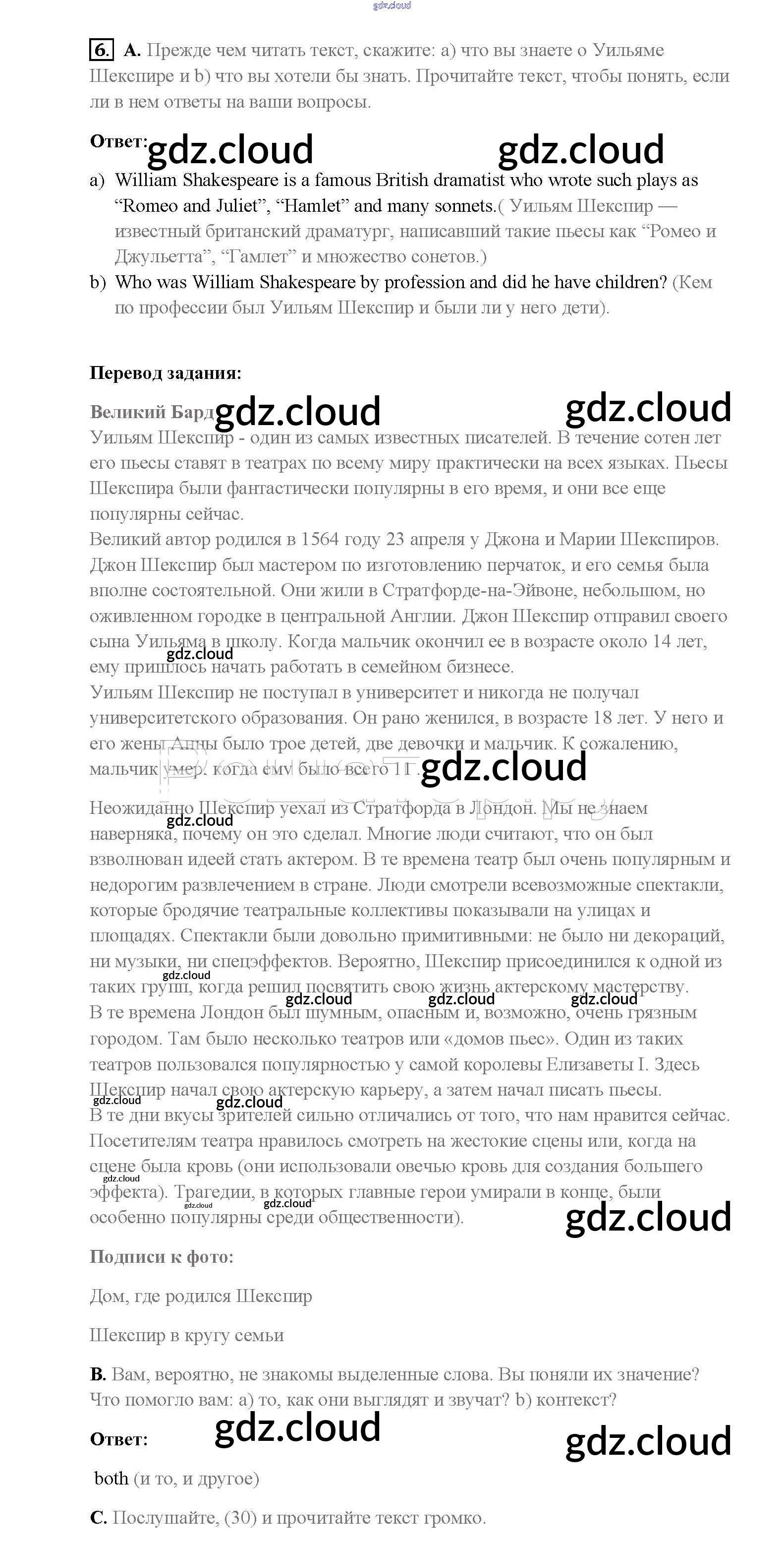 Ответ на задание 6 Учебник Английский язык  за 8 (восьмой) класс Афанасьева, Михеева, Баранова Rainbow  2016