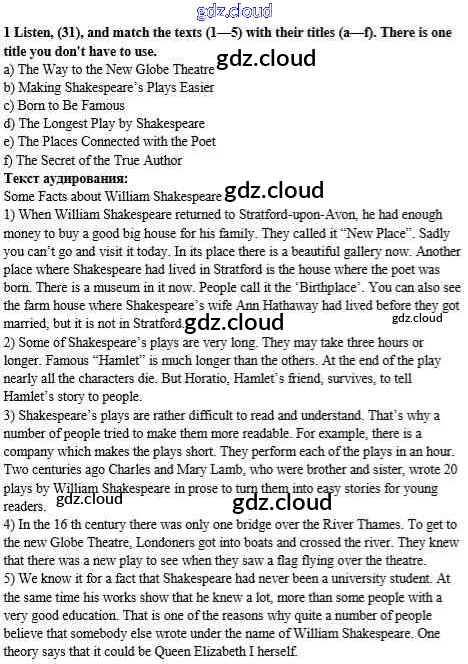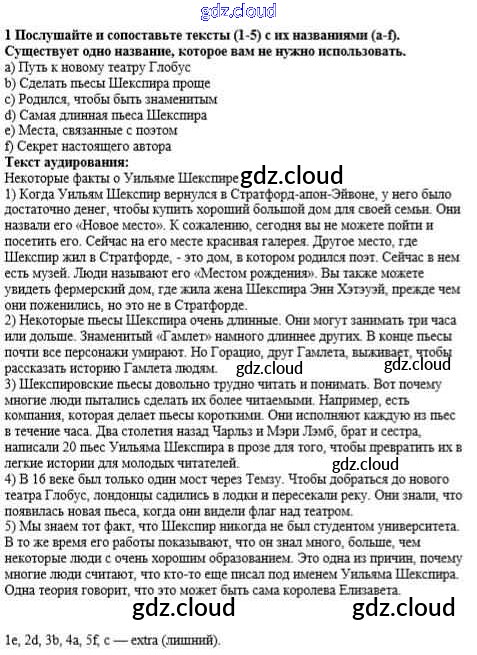 Ответ на задание 1 Учебник Английский язык  за 8 (восьмой) класс Афанасьева, Михеева, Баранова Rainbow  2016