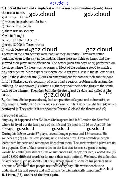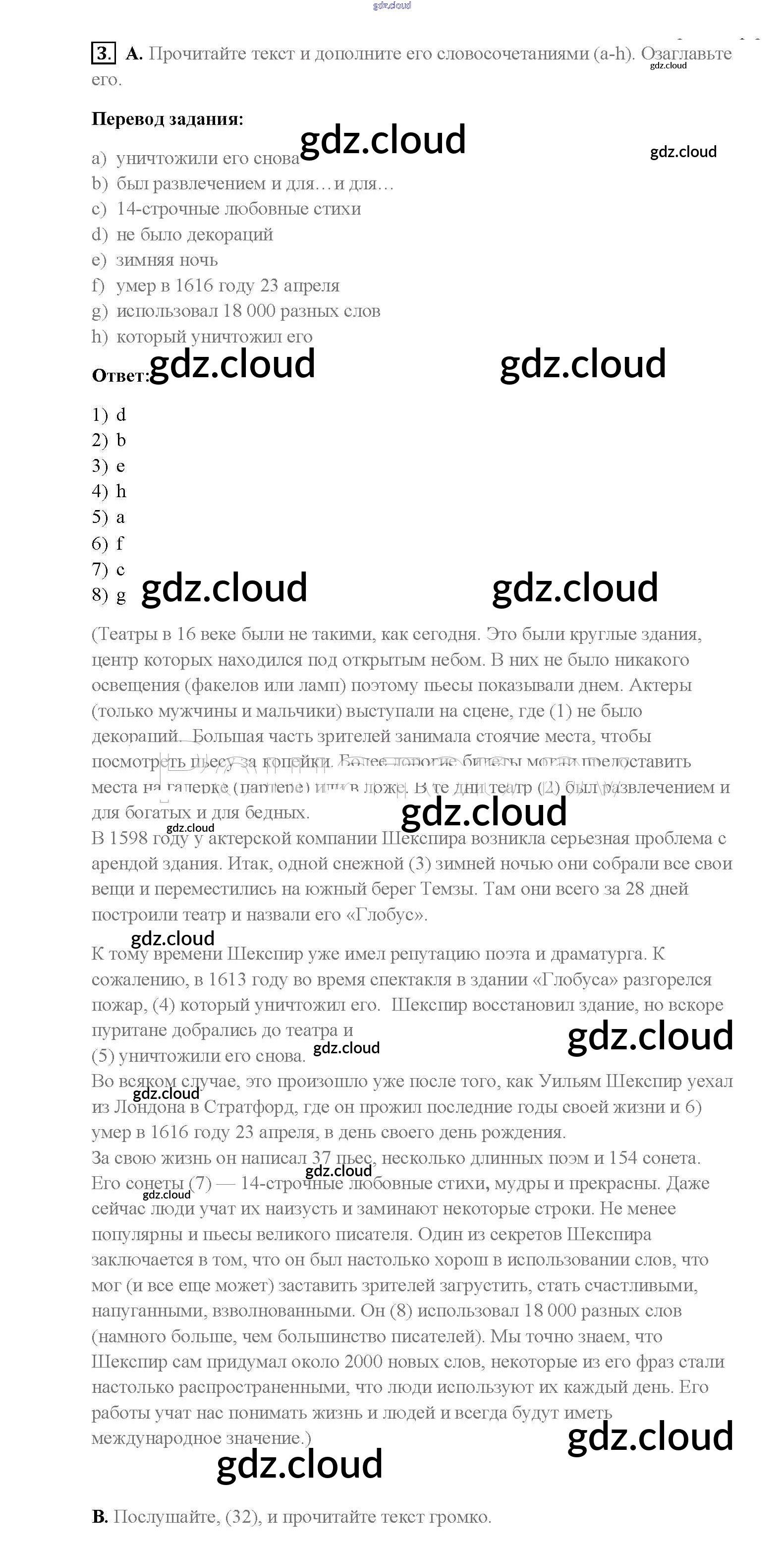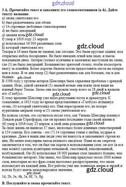 Ответ на задание 3 Учебник Английский язык  за 8 (восьмой) класс Афанасьева, Михеева, Баранова Rainbow  2016