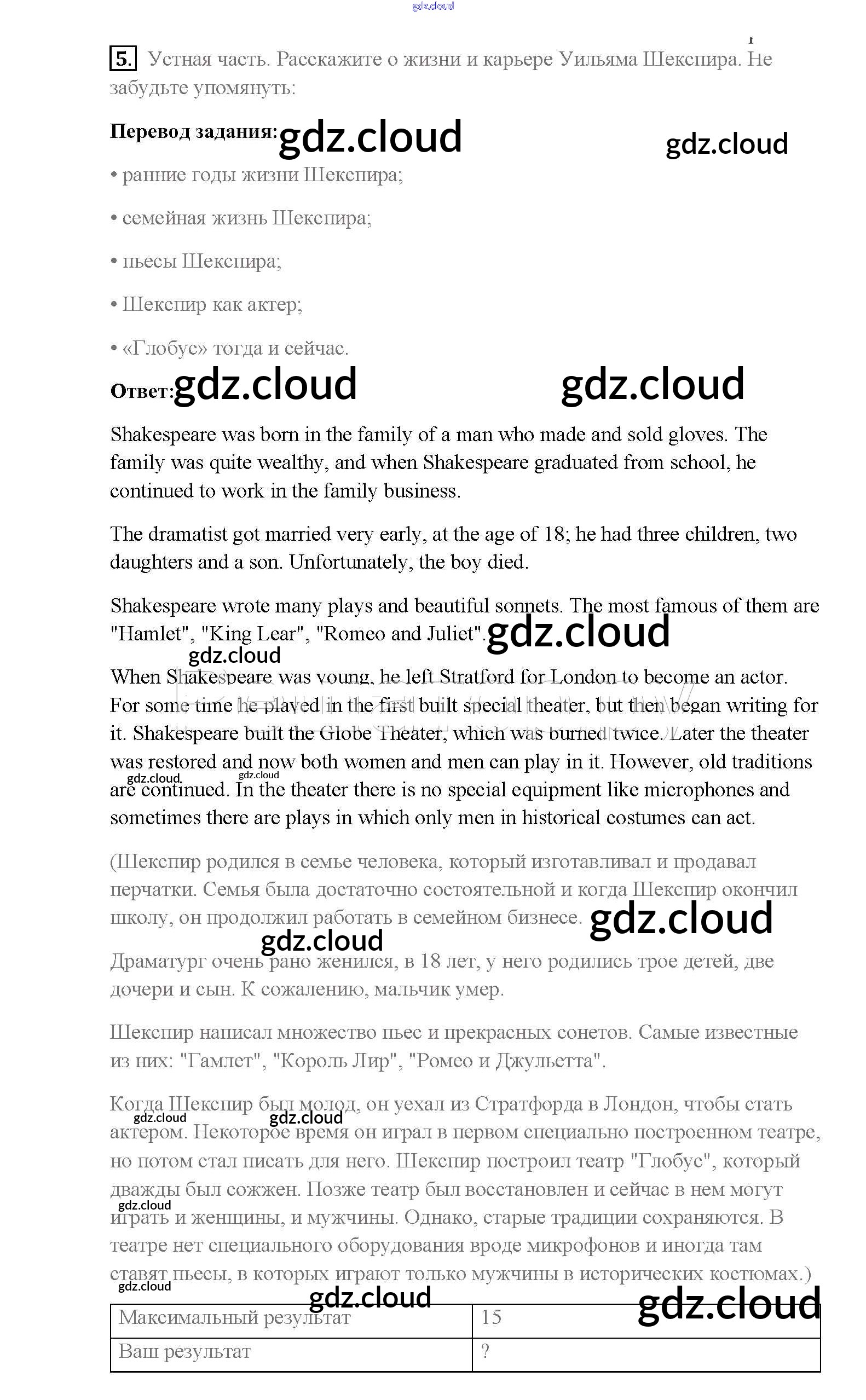 Ответ на задание 5 Учебник Английский язык  за 8 (восьмой) класс Афанасьева, Михеева, Баранова Rainbow  2016