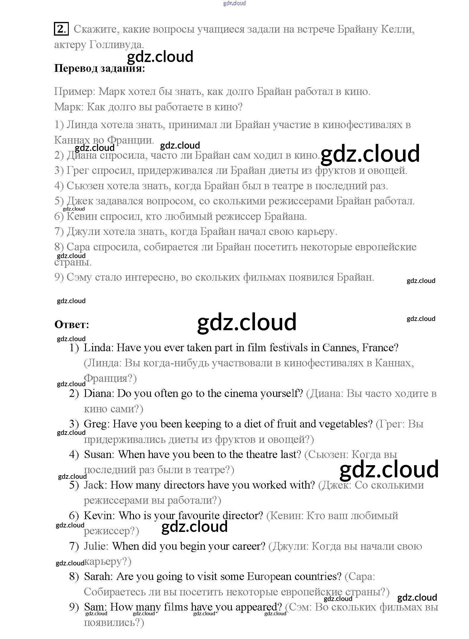 Ответ на задание 2 Учебник Английский язык  за 8 (восьмой) класс Афанасьева, Михеева, Баранова Rainbow  2016