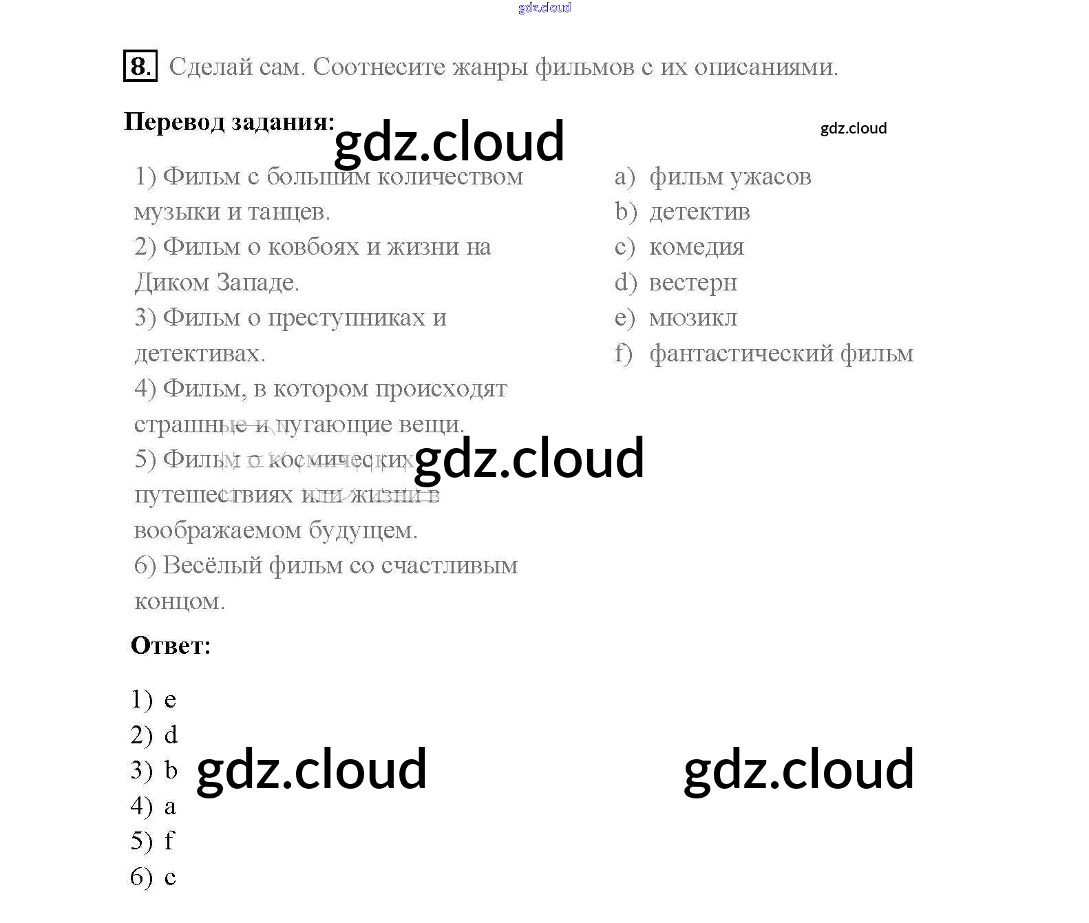 Ответ на задание 8 Учебник Английский язык  за 8 (восьмой) класс Афанасьева, Михеева, Баранова Rainbow  2016