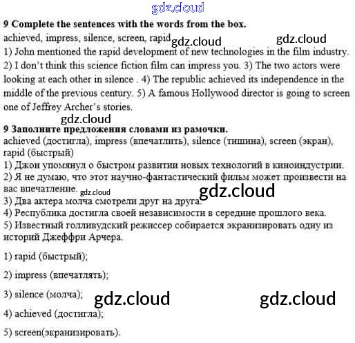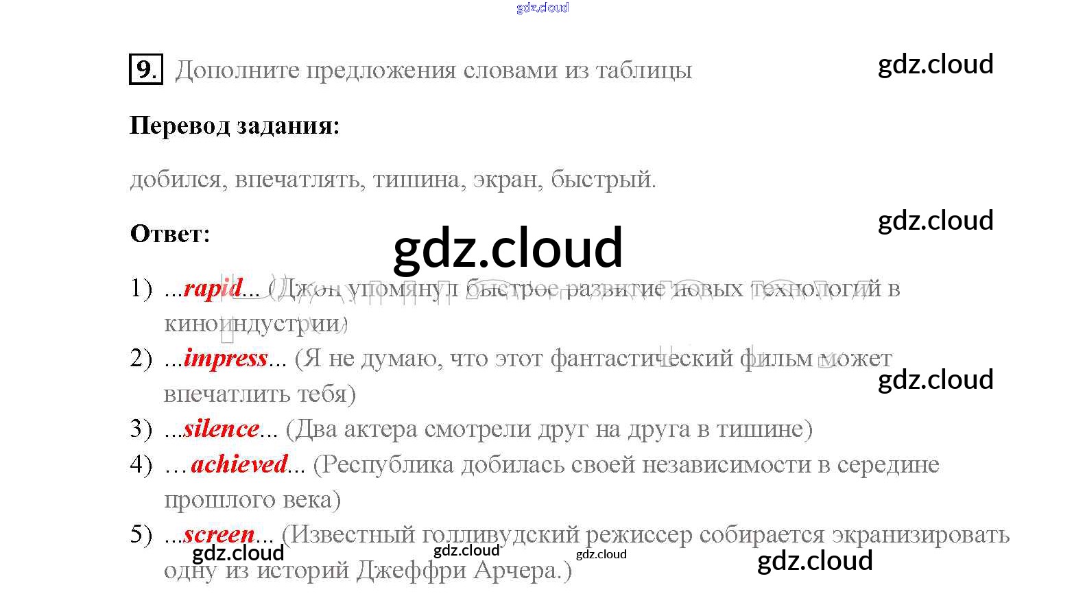 Ответ на задание 9 Учебник Английский язык  за 8 (восьмой) класс Афанасьева, Михеева, Баранова Rainbow  2016