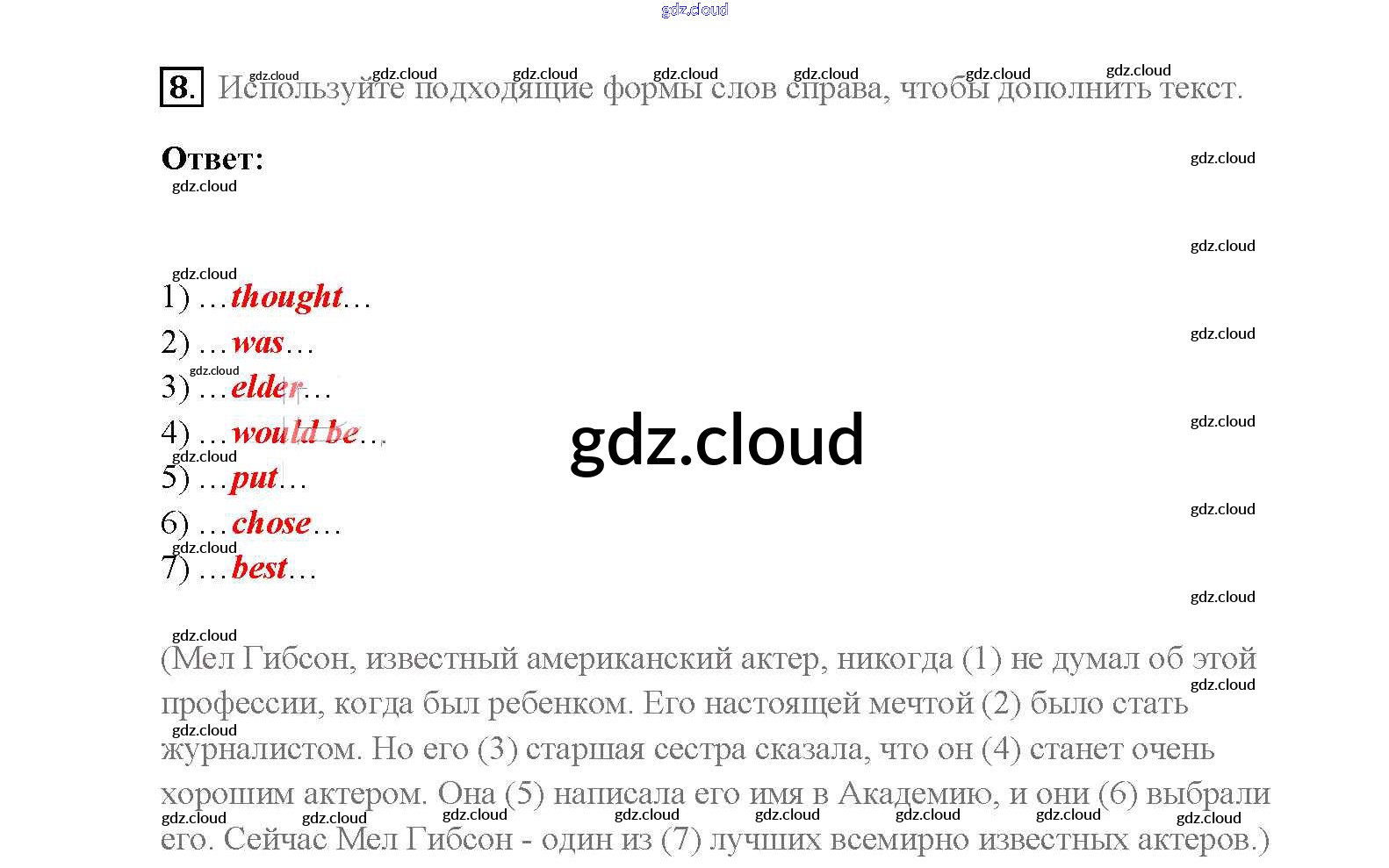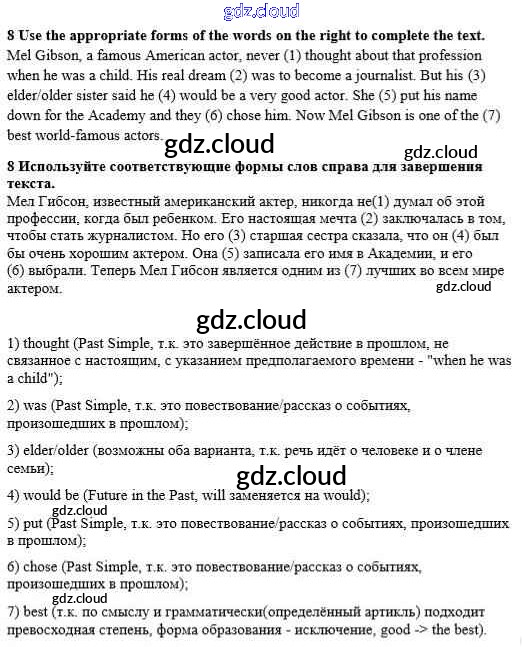 Ответ на задание 8 Учебник Английский язык  за 8 (восьмой) класс Афанасьева, Михеева, Баранова Rainbow  2016