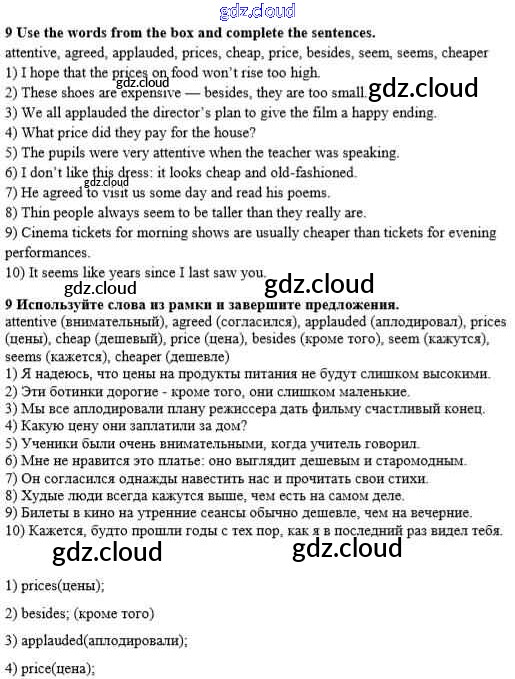 Ответ на задание 9 Учебник Английский язык  за 8 (восьмой) класс Афанасьева, Михеева, Баранова Rainbow  2016