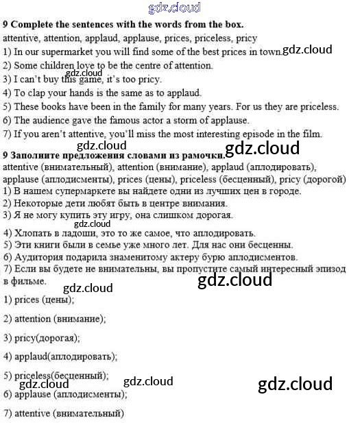 Ответ на задание 9 Учебник Английский язык  за 8 (восьмой) класс Афанасьева, Михеева, Баранова Rainbow  2016