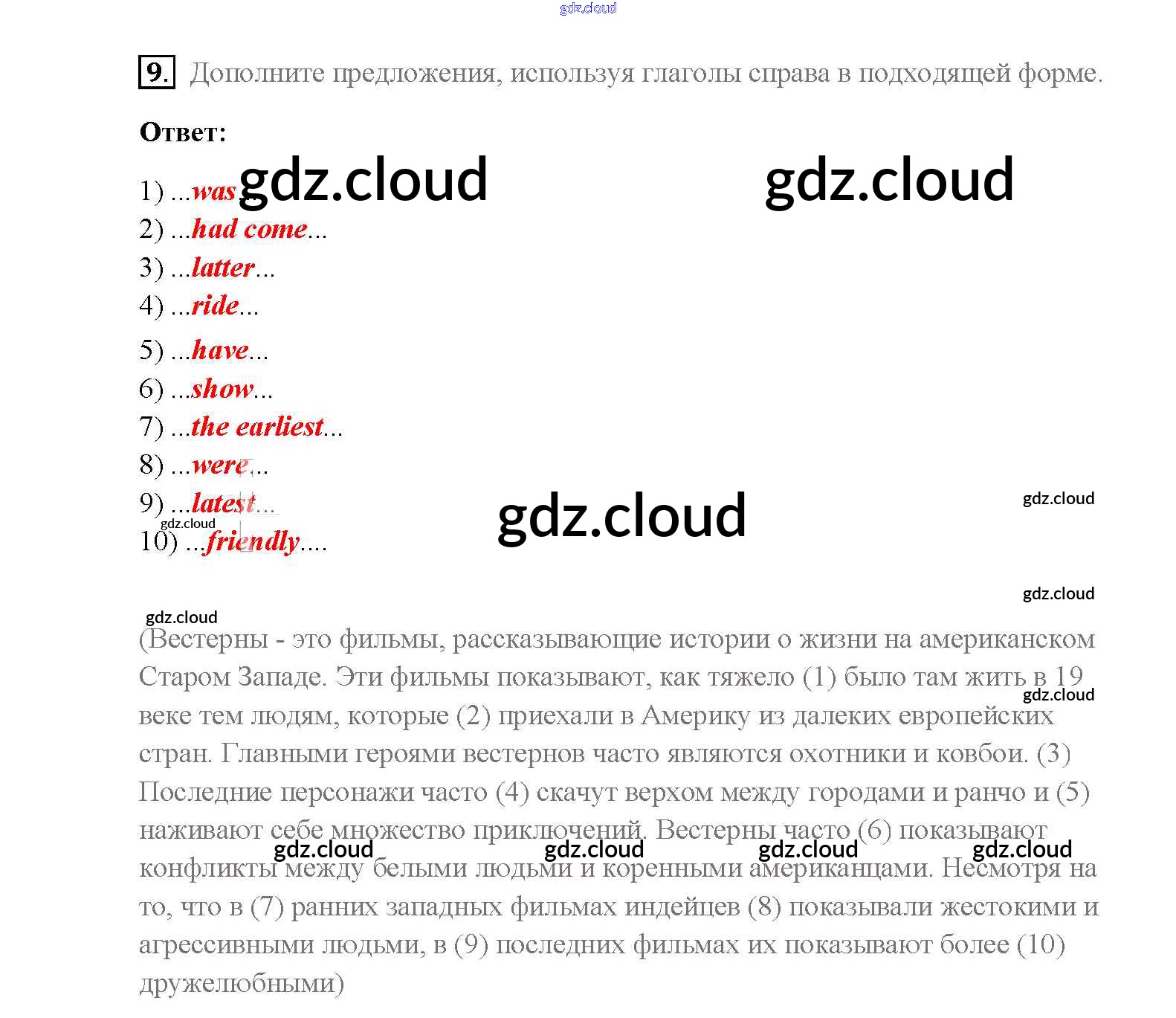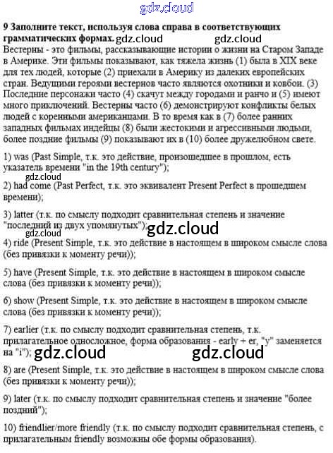 Ответ на задание 9 Учебник Английский язык  за 8 (восьмой) класс Афанасьева, Михеева, Баранова Rainbow  2016