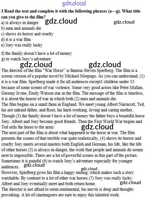 Step 9 Ответы к Unit 3. Performing arts: cinema по Английскому языку 8 класс Учебник Афанасьева Rainbow   Дрофа