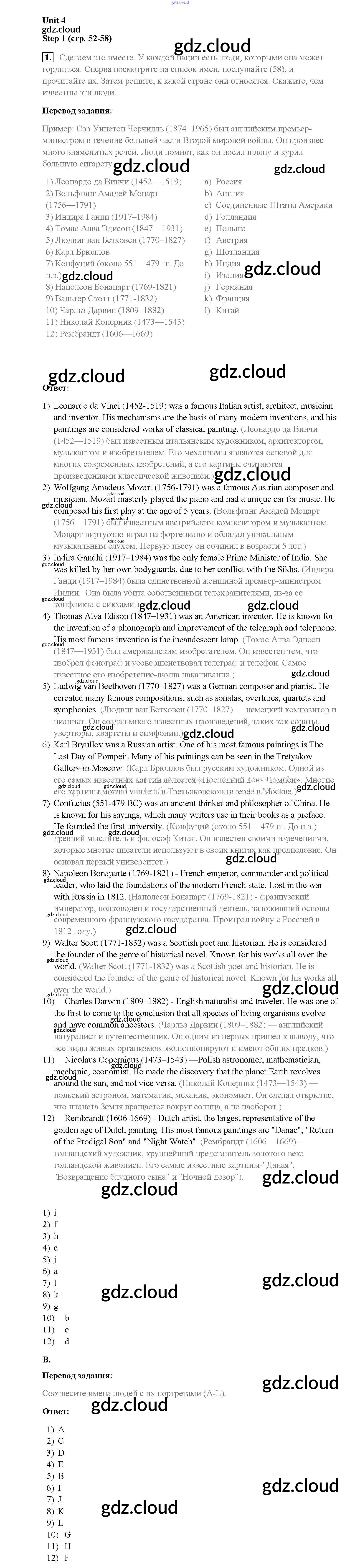Step 1 Ответы к Unit 4. The whole world knows them по Английскому языку 8 класс Учебник Афанасьева Rainbow   Дрофа