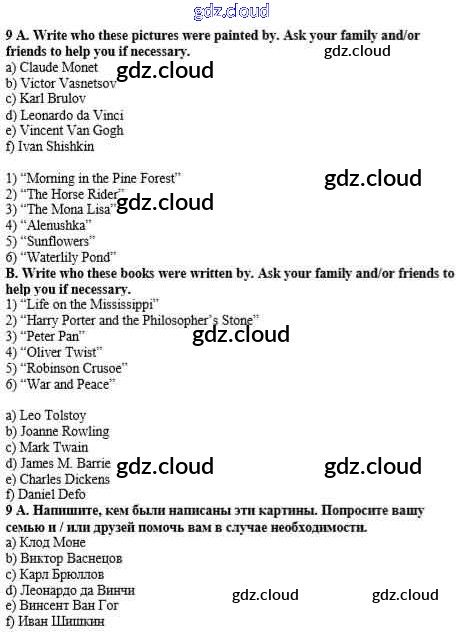 Ответ на задание 9 Учебник Английский язык  за 8 (восьмой) класс Афанасьева, Михеева, Баранова Rainbow  2016