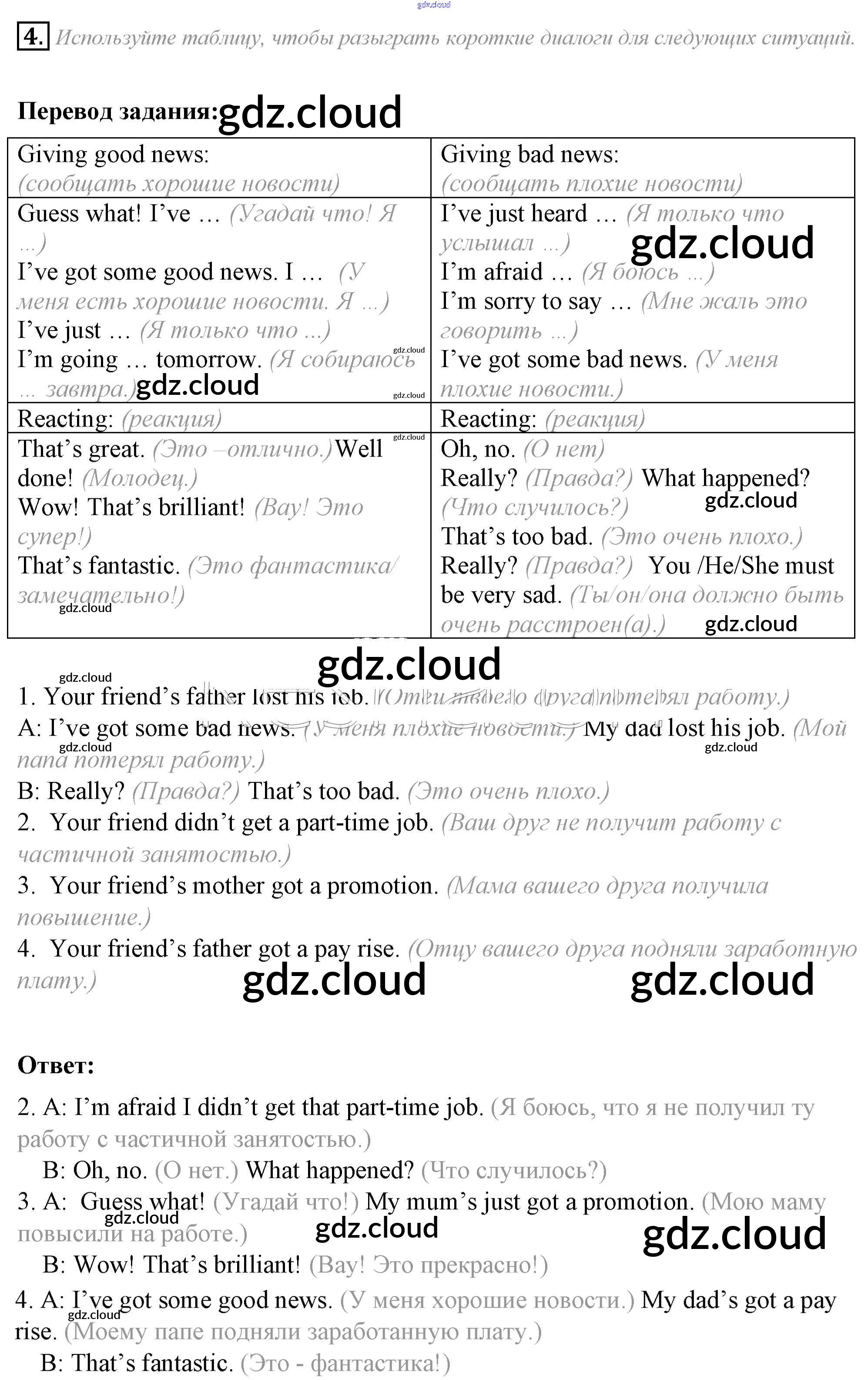 Ответ на задание 4 Учебник Английский язык за 8 (восьмой) класс Ваулина, Дули, Эванс, Подоляко Spotlight 2015