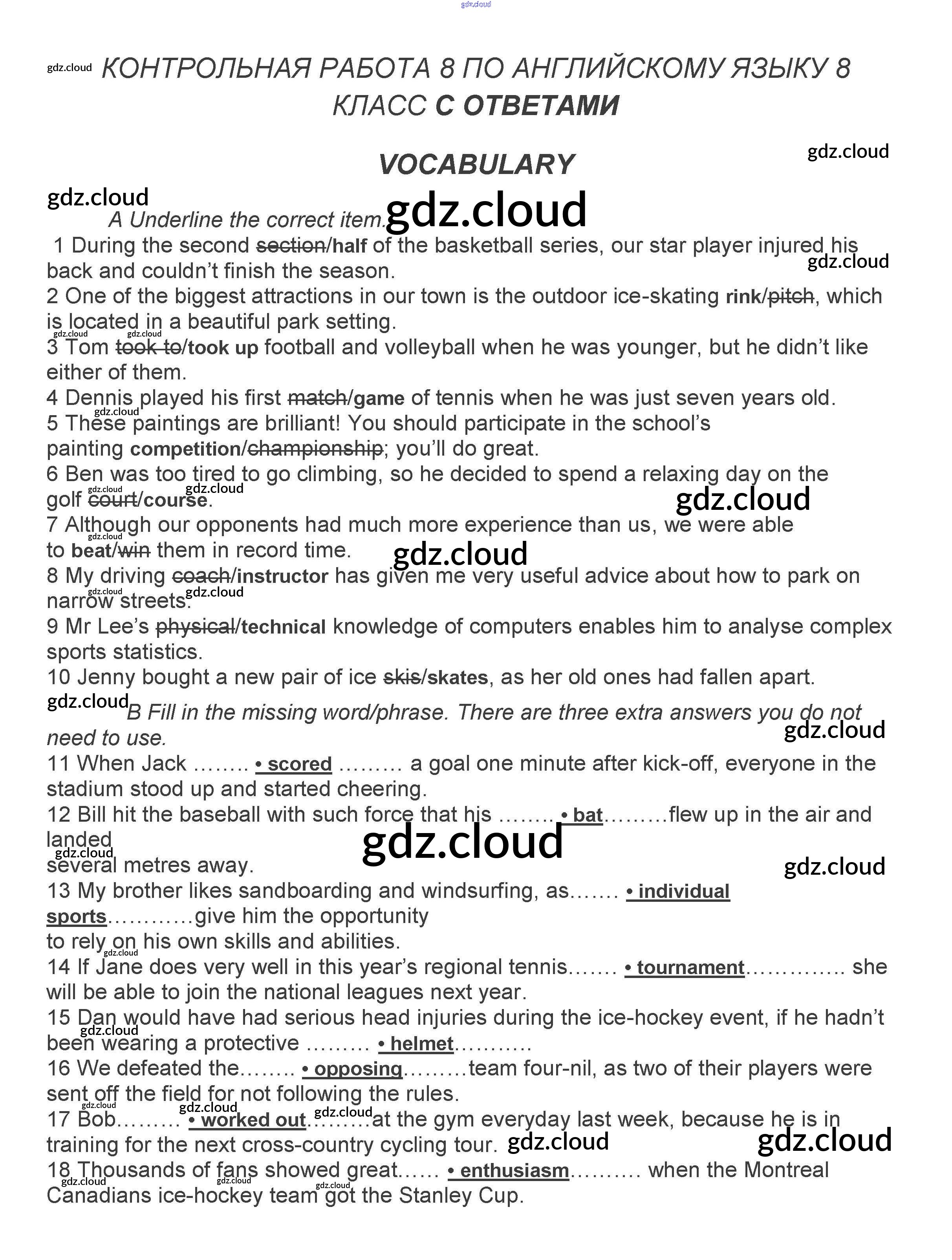 Ответы. Контрольная работа 8  по Английскому языку 8 класс Контрольные задания Ваулина Spotlight   Просвещение