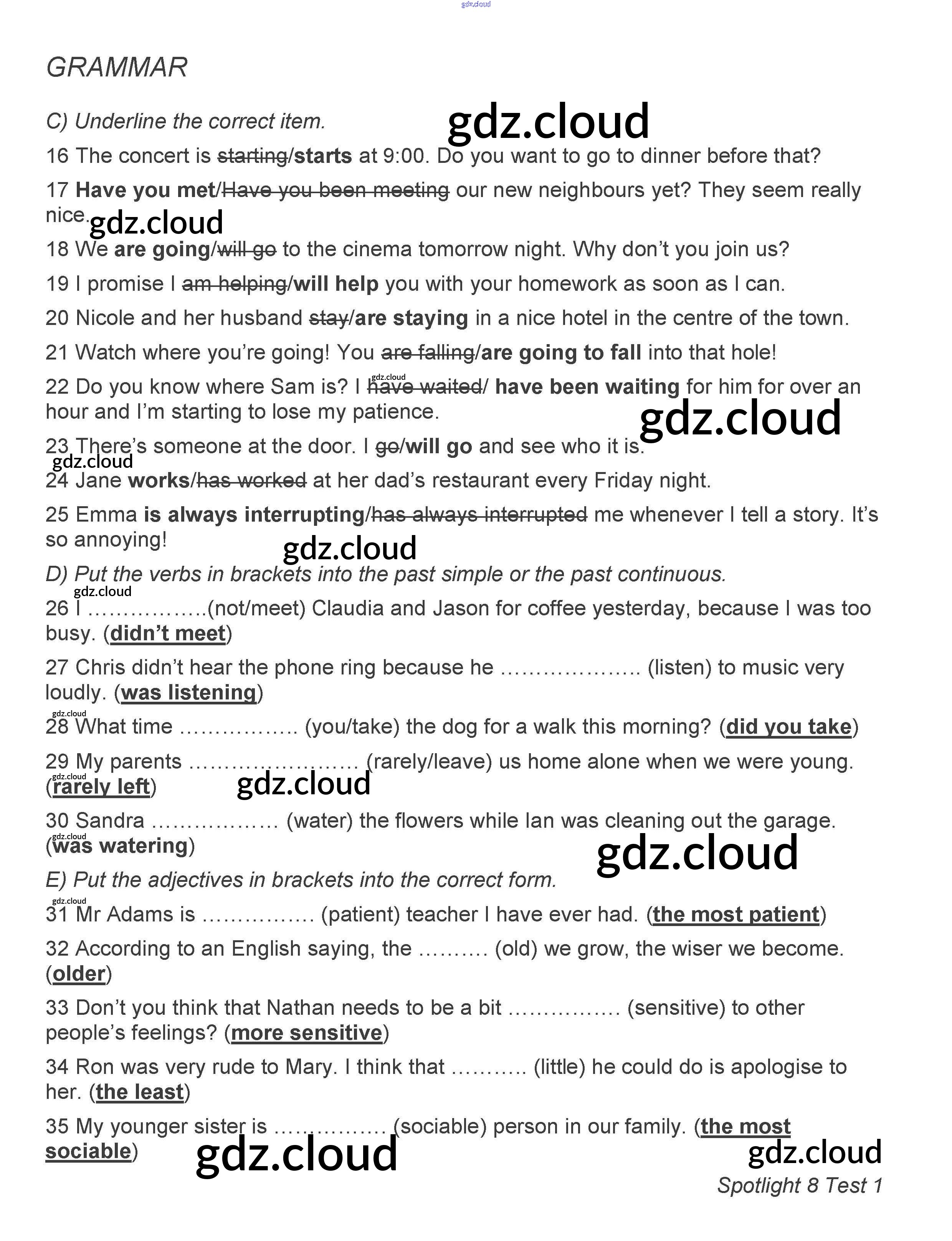 Ответы. Контрольная работа 1  по Английскому языку 8 класс Контрольные задания Ваулина Spotlight   Просвещение