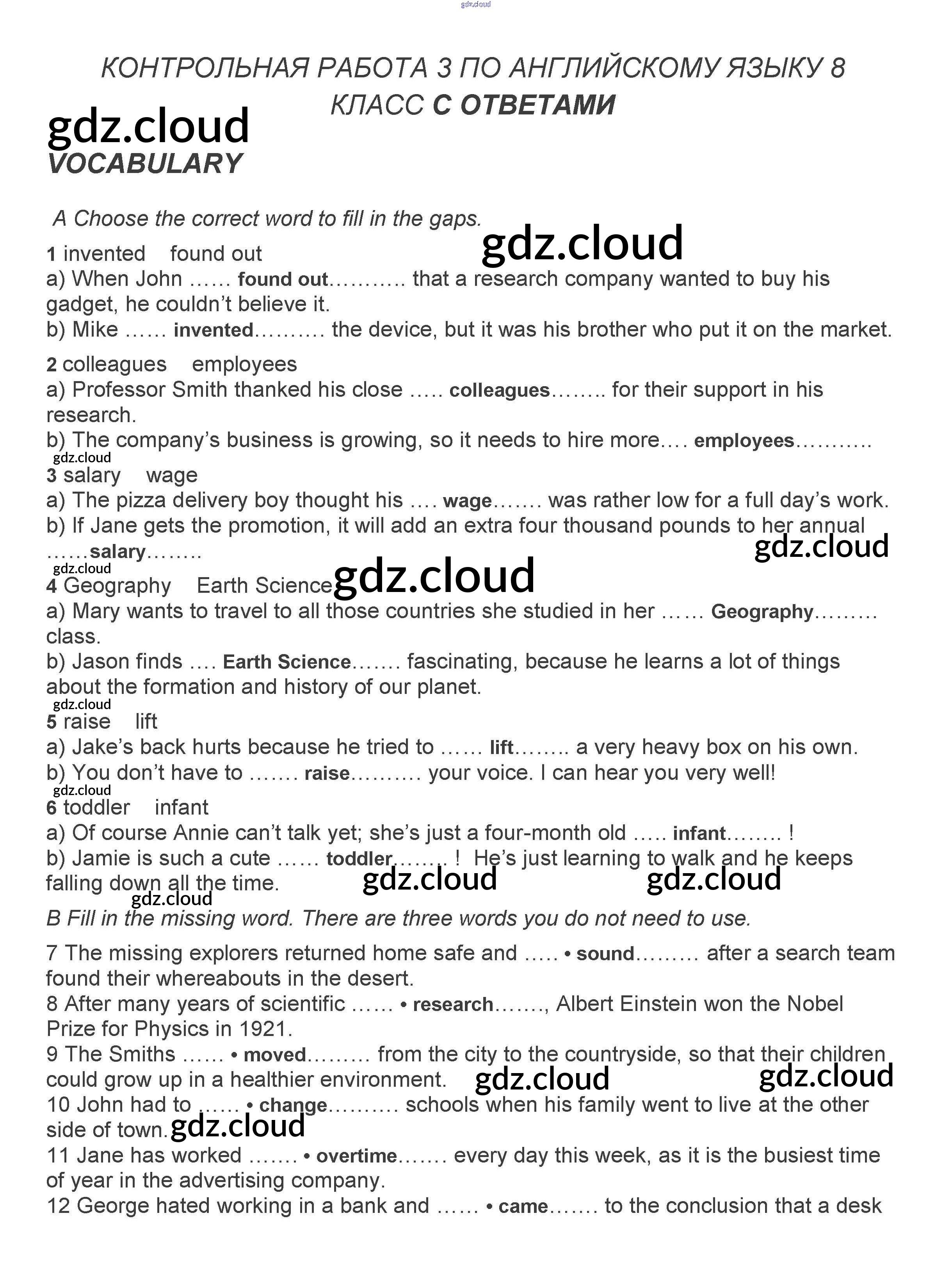 Ответы. Контрольная работа 3  по Английскому языку 8 класс Контрольные задания Ваулина Spotlight   Просвещение