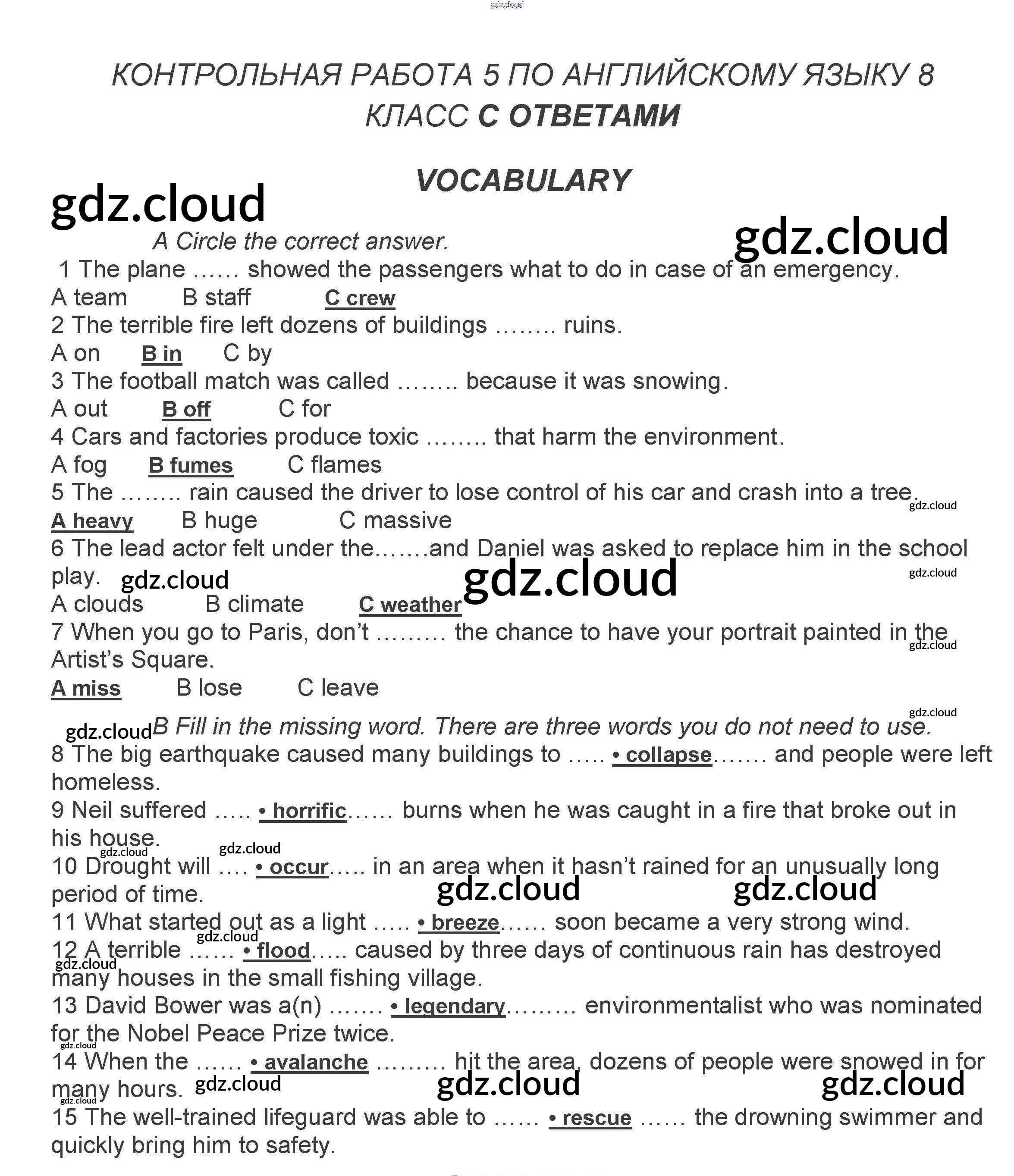 Ответы. Контрольная работа 5  по Английскому языку 8 класс Контрольные задания Ваулина Spotlight   Просвещение