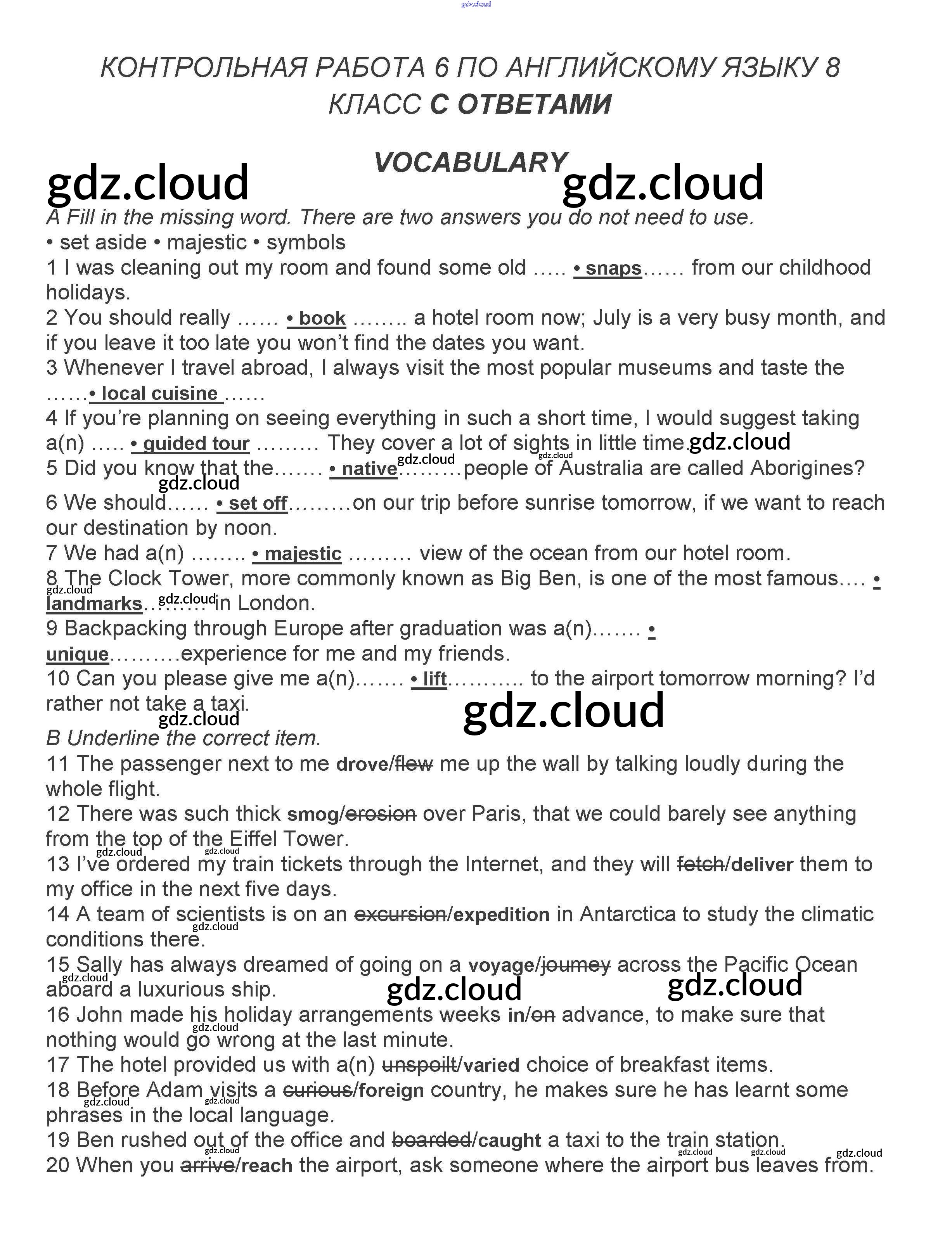 Ответы. Контрольная работа 6  по Английскому языку 8 класс Контрольные задания Ваулина Spotlight   Просвещение