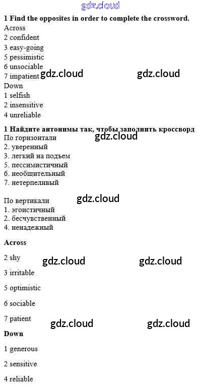 Ответ на задание 1 Рабочая тетрадь Английский язык  за 8 (восьмой) класс Ваулина, Дули, Подоляко, Эванс Spotlight  2016