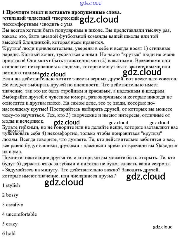 Ответ на задание 1 Рабочая тетрадь Английский язык  за 8 (восьмой) класс Ваулина, Дули, Подоляко, Эванс Spotlight  2016