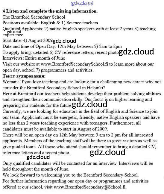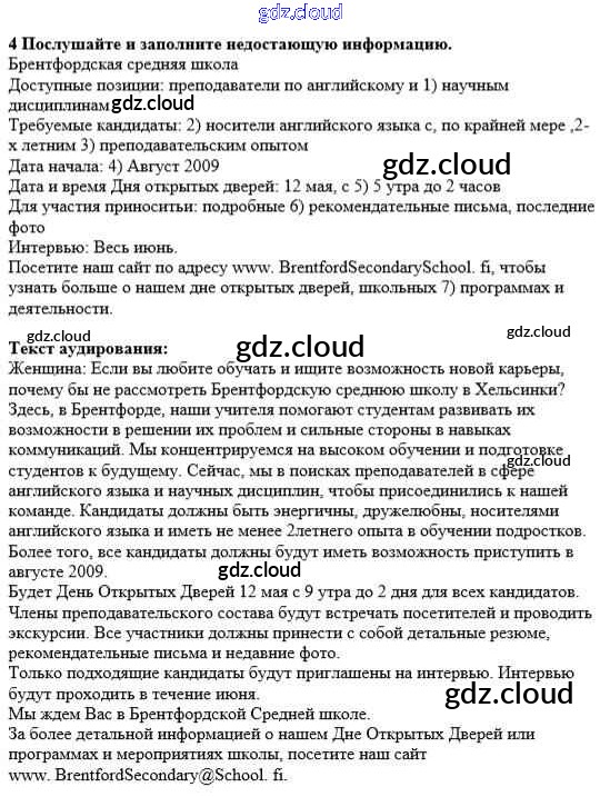 Ответ на задание 4 Рабочая тетрадь Английский язык  за 8 (восьмой) класс Ваулина, Дули, Подоляко, Эванс Spotlight  2016