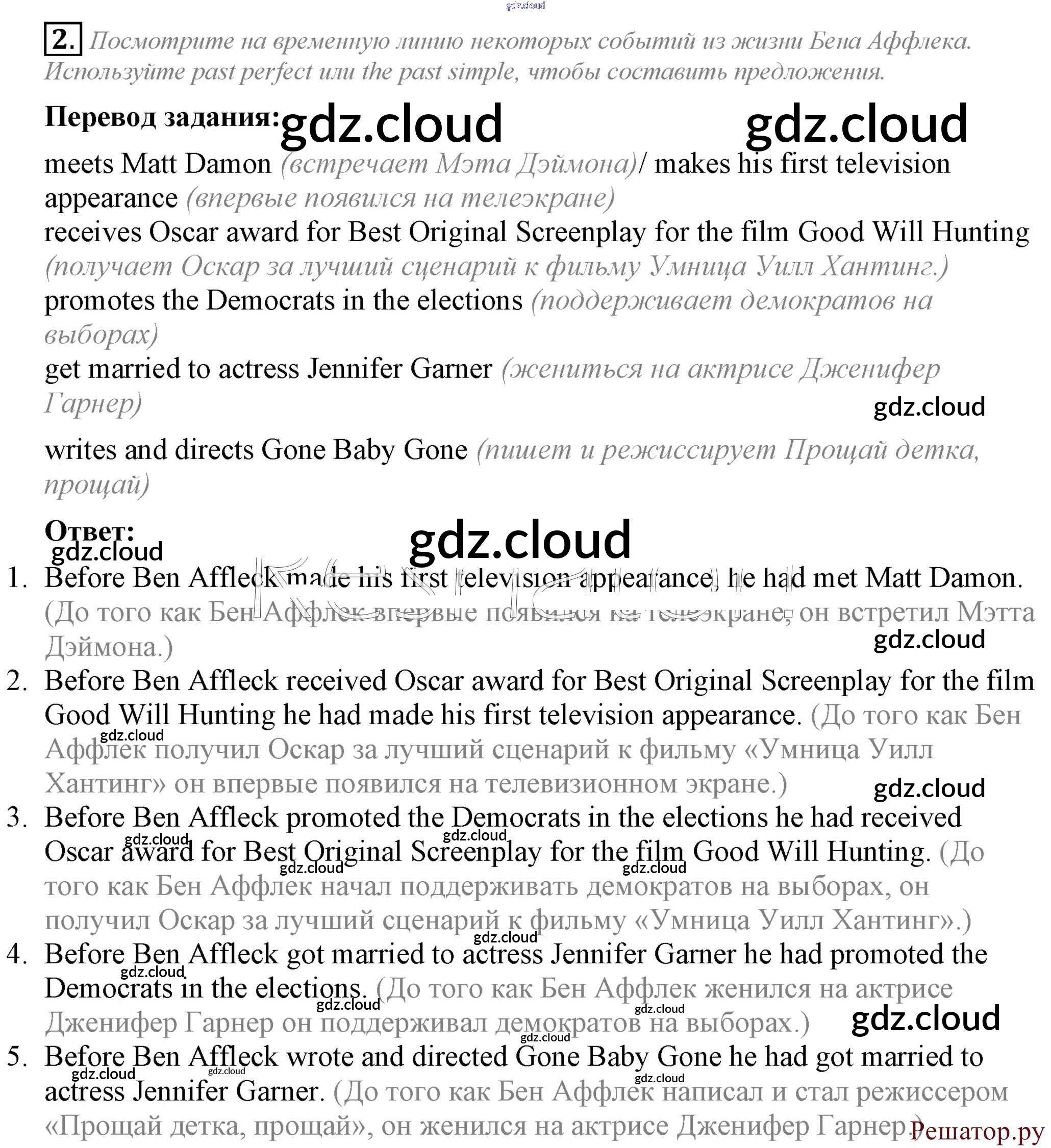 Ответ на задание 2 Рабочая тетрадь Английский язык за 8 (восьмой) класс Ваулина, Дули, Подоляко, Эванс Spotlight 2016