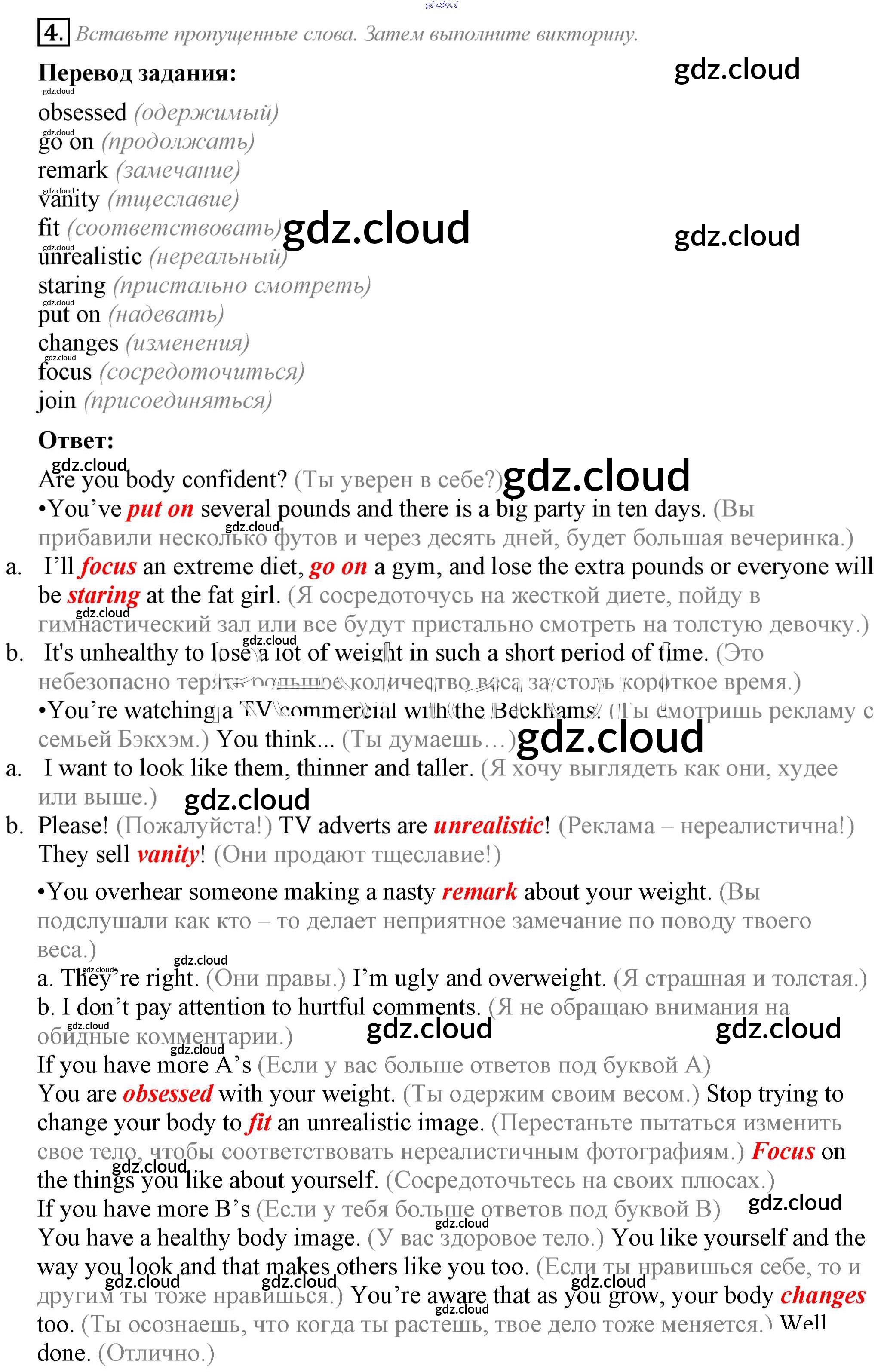 Ответ на задание 4 Рабочая тетрадь Английский язык  за 8 (восьмой) класс Ваулина, Дули, Подоляко, Эванс Spotlight  2016