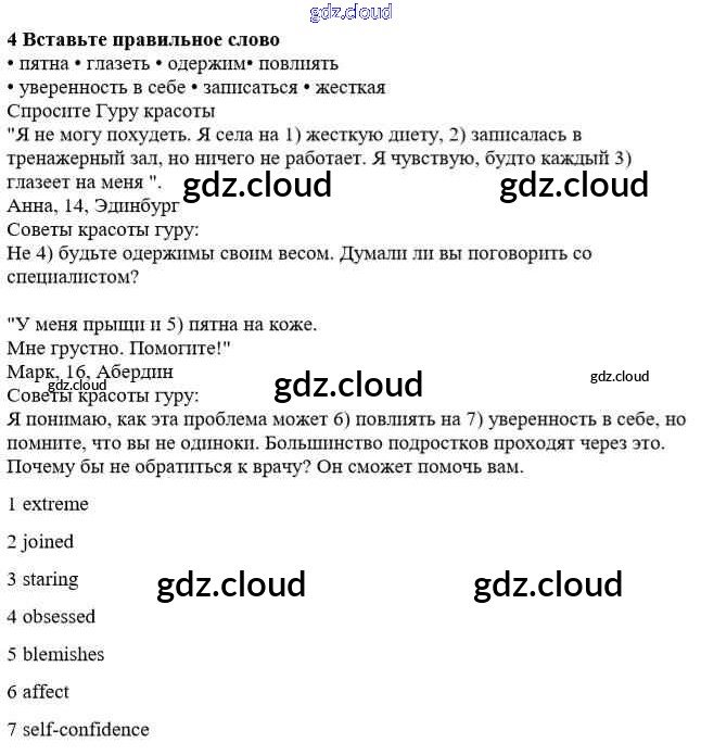 Ответ на задание 4 Рабочая тетрадь Английский язык за 8 (восьмой) класс Ваулина, Дули, Подоляко, Эванс Spotlight 2016