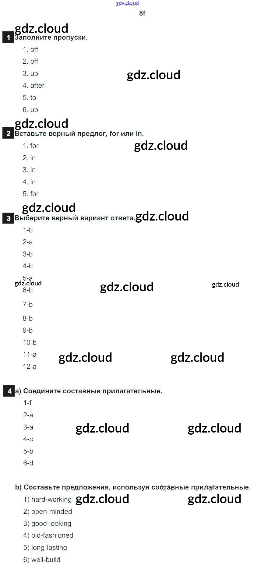 Ответ на задание 8f Рабочая тетрадь Английский язык  за 8 (восьмой) класс Ваулина, Дули, Подоляко, Эванс Spotlight  2016