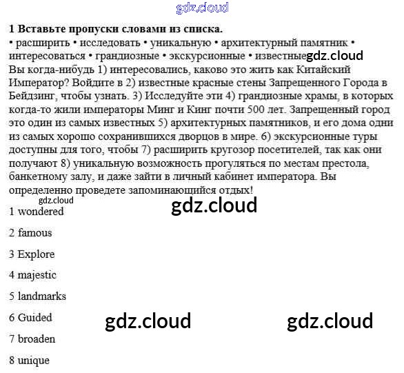 Ответ на задание 1 Рабочая тетрадь Английский язык  за 8 (восьмой) класс Ваулина, Дули, Подоляко, Эванс Spotlight  2016