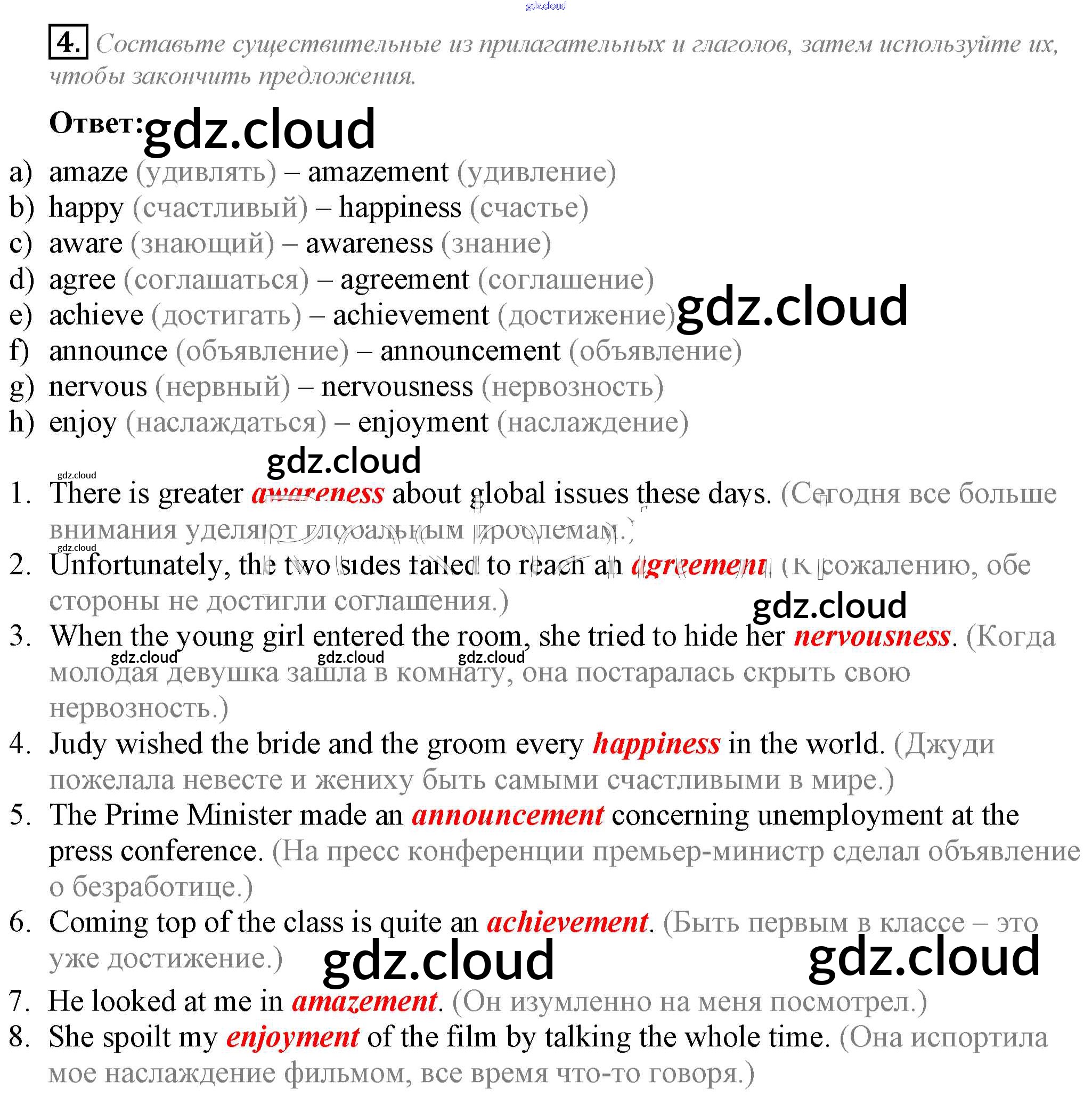 Ответ на задание 4 Рабочая тетрадь Английский язык  за 8 (восьмой) класс Ваулина, Дули, Подоляко, Эванс Spotlight  2016