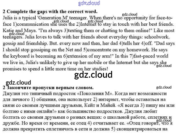 Ответ на задание 2 Рабочая тетрадь Английский язык  за 8 (восьмой) класс Ваулина, Дули, Подоляко, Эванс Spotlight  2016